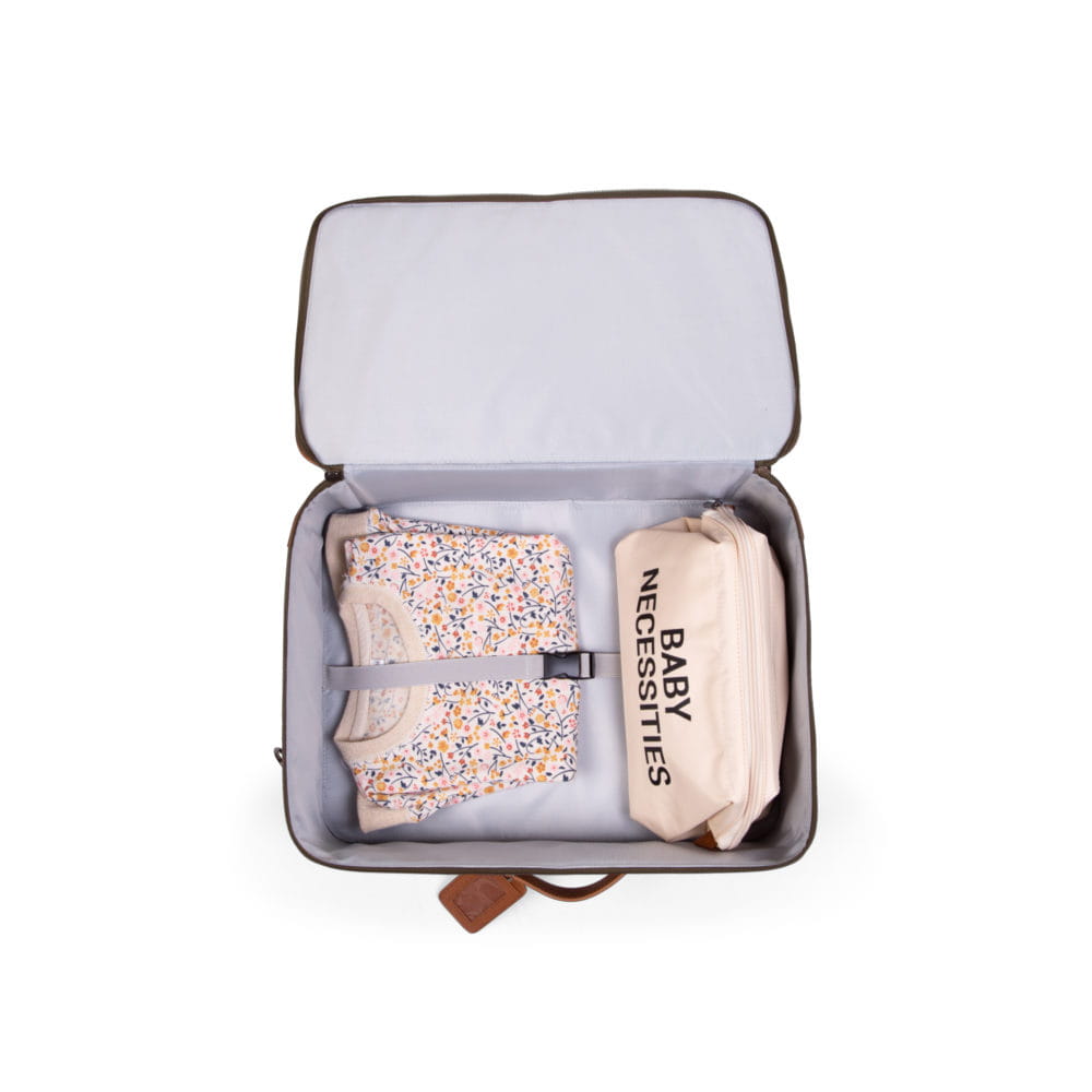 Walizka dla dziecka Childhome świetnie się prezentuje, jest kompaktowa, ale też bardzo pojemna. W środku jest dużo miejsca na ubrania i zabawki, które można zabezpieczyć i posortować gumowym paskiem na klamerkę.