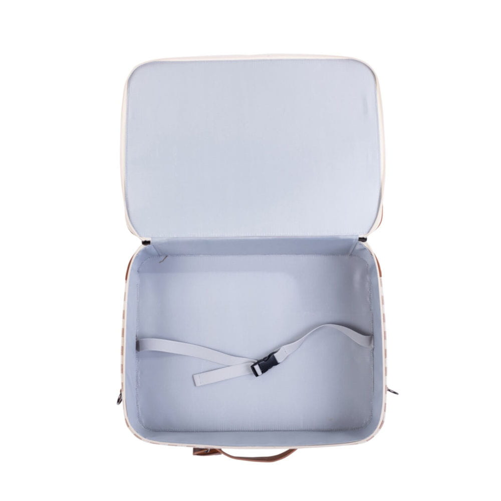 Walizka dla dziecka Childhome świetnie się prezentuje, jest kompaktowa, ale też bardzo pojemna. W środku jest dużo miejsca na ubrania i zabawki, które można zabezpieczyć i posortować gumowym paskiem na klamerkę.