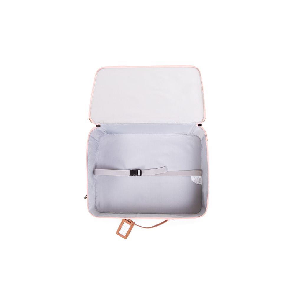 Walizka dla dziewczynki Childhome świetnie się prezentuje, jest kompaktowa, ale też bardzo pojemna. W środku jest dużo miejsca na ubrania i zabawki, które można zabezpieczyć i posortować gumowym paskiem na klamerkę.