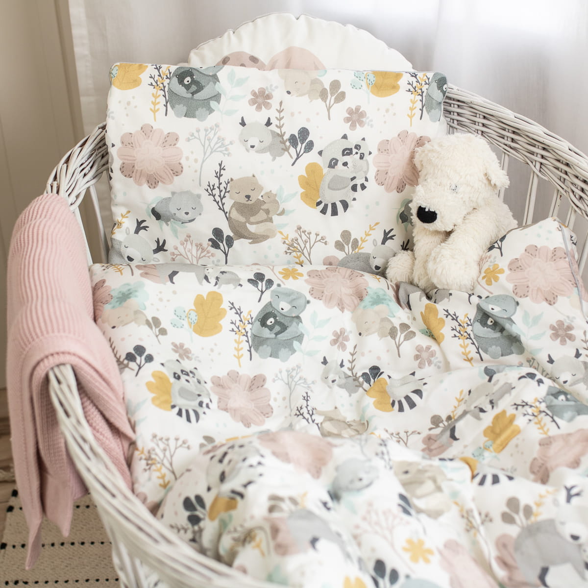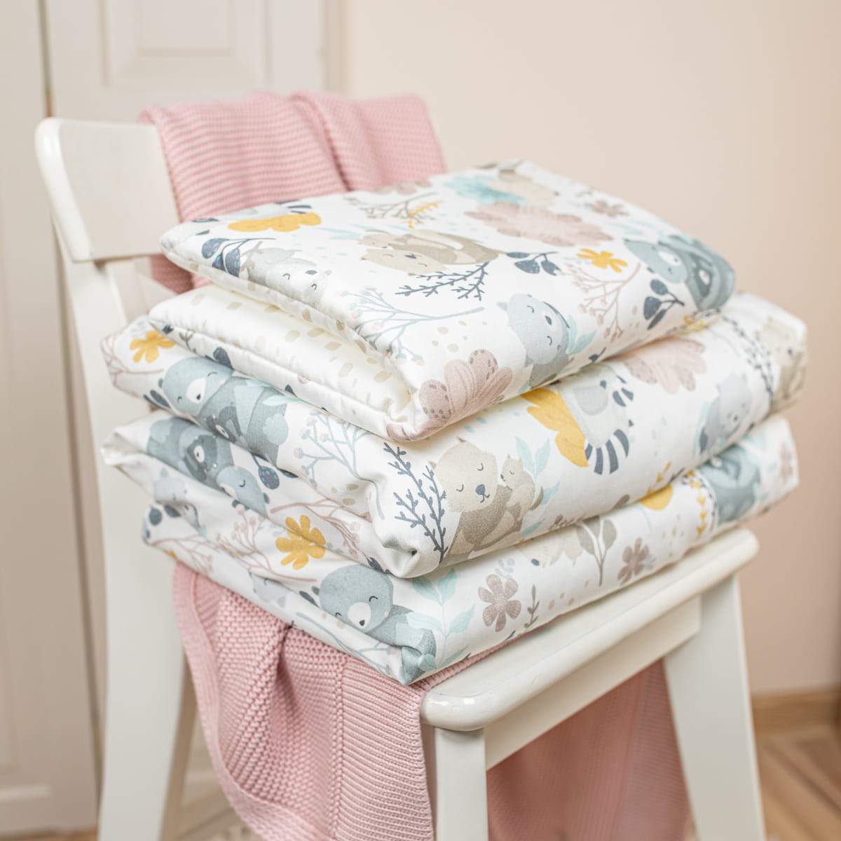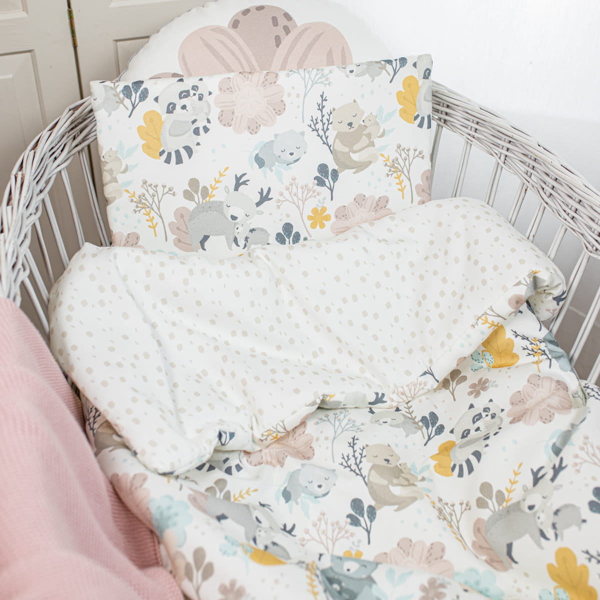 Pościel Mom and Me w rozmiarze 75x100 cm jest na stałe zszyta na wszystkich brzegach z milutkim wypełnieniem, aby maleństwa nóżki nie wplątały się w poszewkę, bądź nie zraniły od napy czy suwaka. Bez obaw możesz całą pościel prać w pralce.