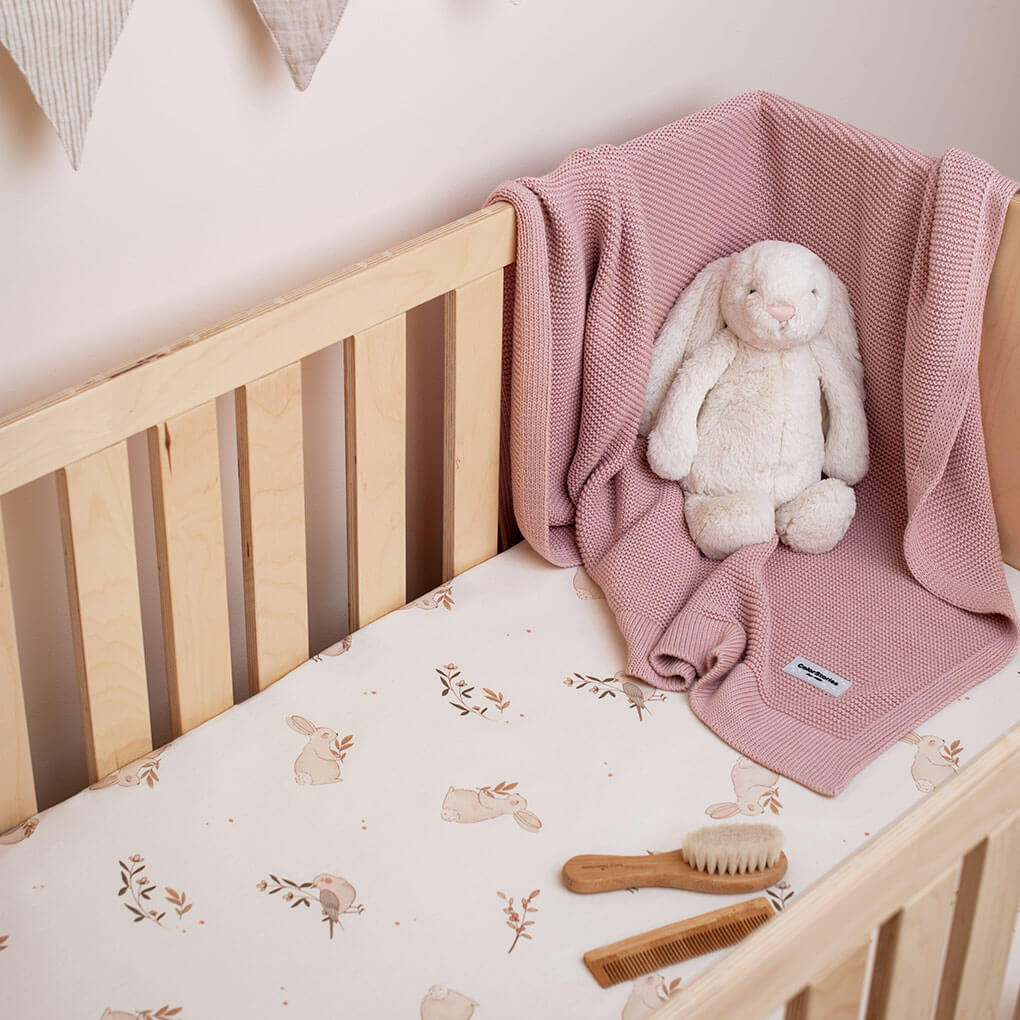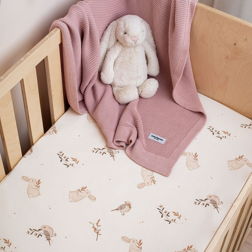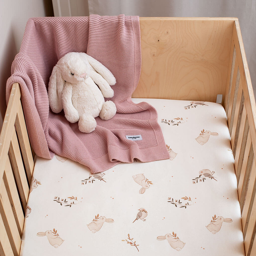 Prześcieradło do łóżeczka 120x60 cm w urocze króliczki. Prześcieradła ColorStories łączą prostotę, najwyższą dbałość o szczegóły, bardzo wysoką jakość wykonania i najwyższej jakości atestowane polskie materiały, abyście wszyscy mogli spać spokojnie i bezpiecznie.
