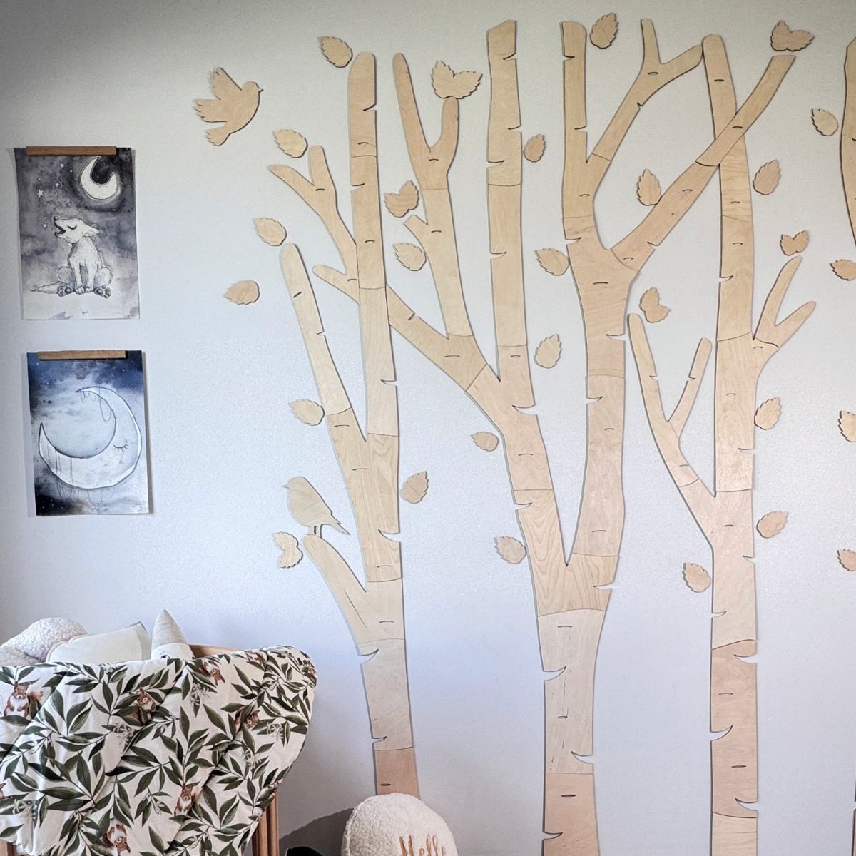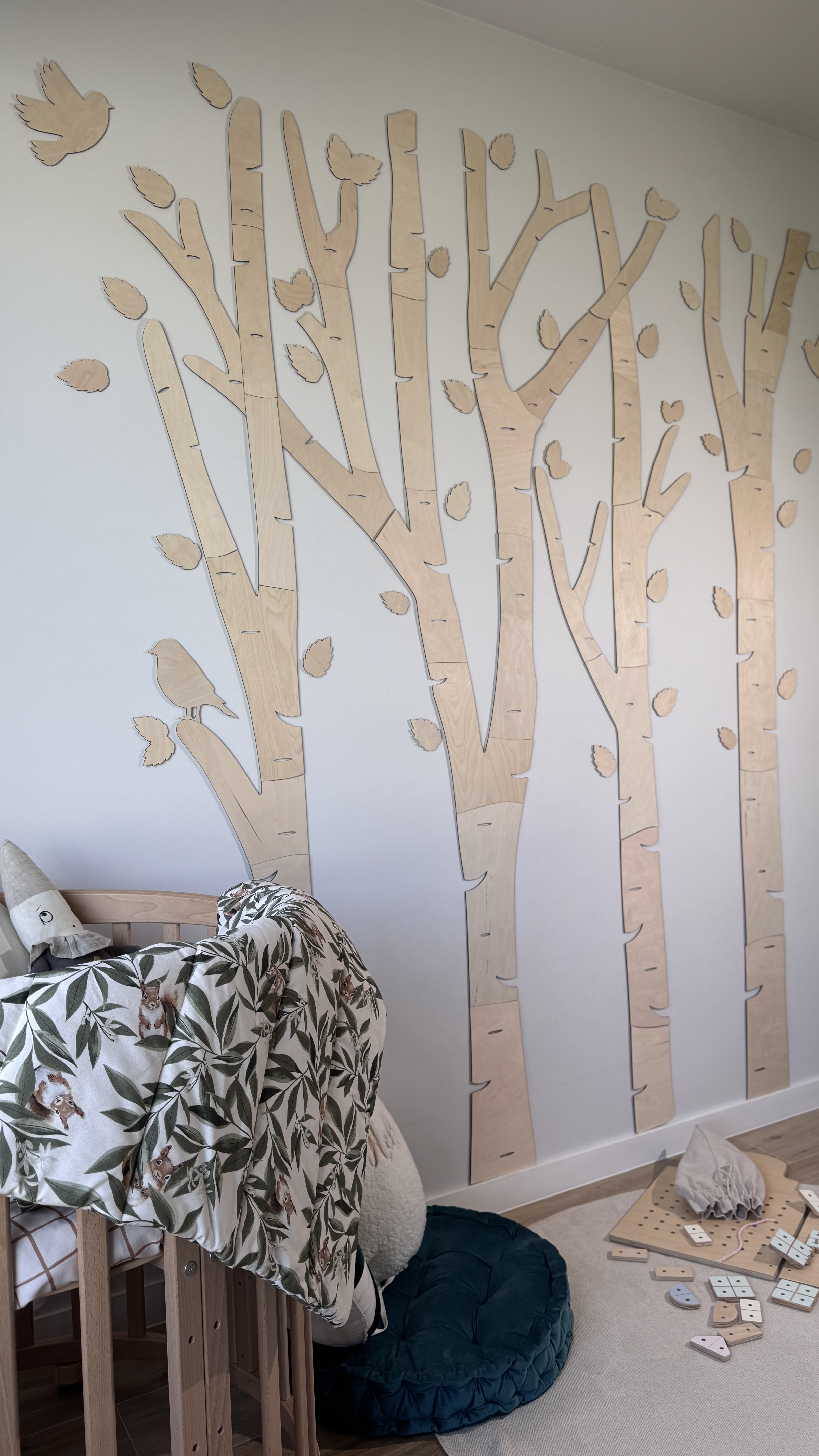 Dekoracja ścienna z brzozami – naturalny las w pokoju dziecka