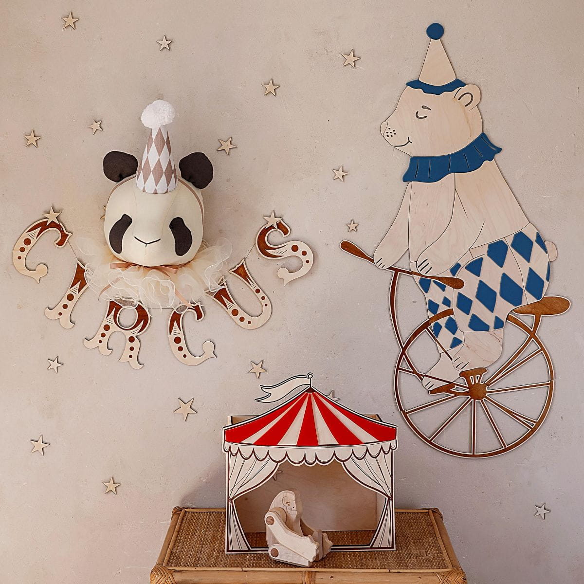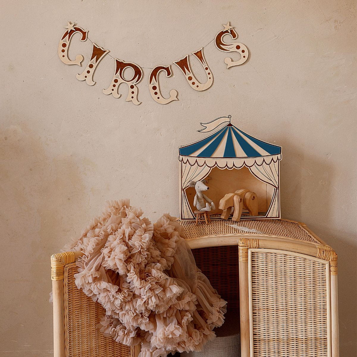 CUT IT NOW - DEKORACJA W STYLU RETRO DREWNIANA GIRLANDA CIRCUS