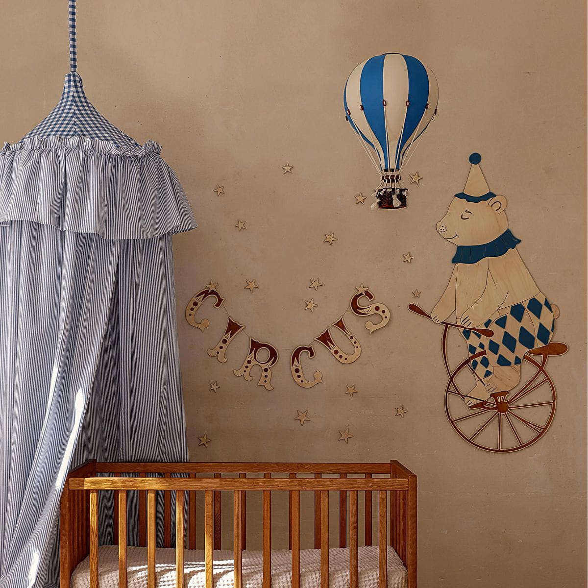 Drewniana girlanda CIRCUS w stylu retro – magiczna dekoracja do pokoju dziecka