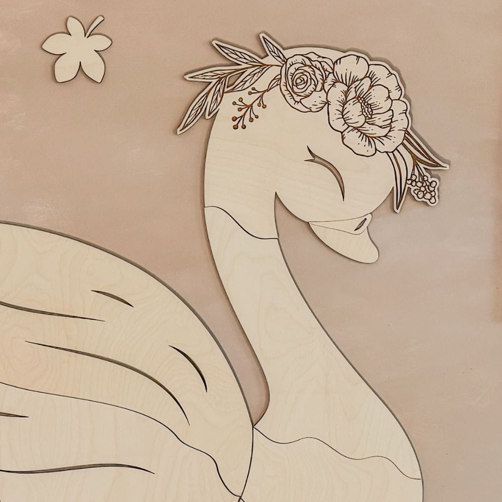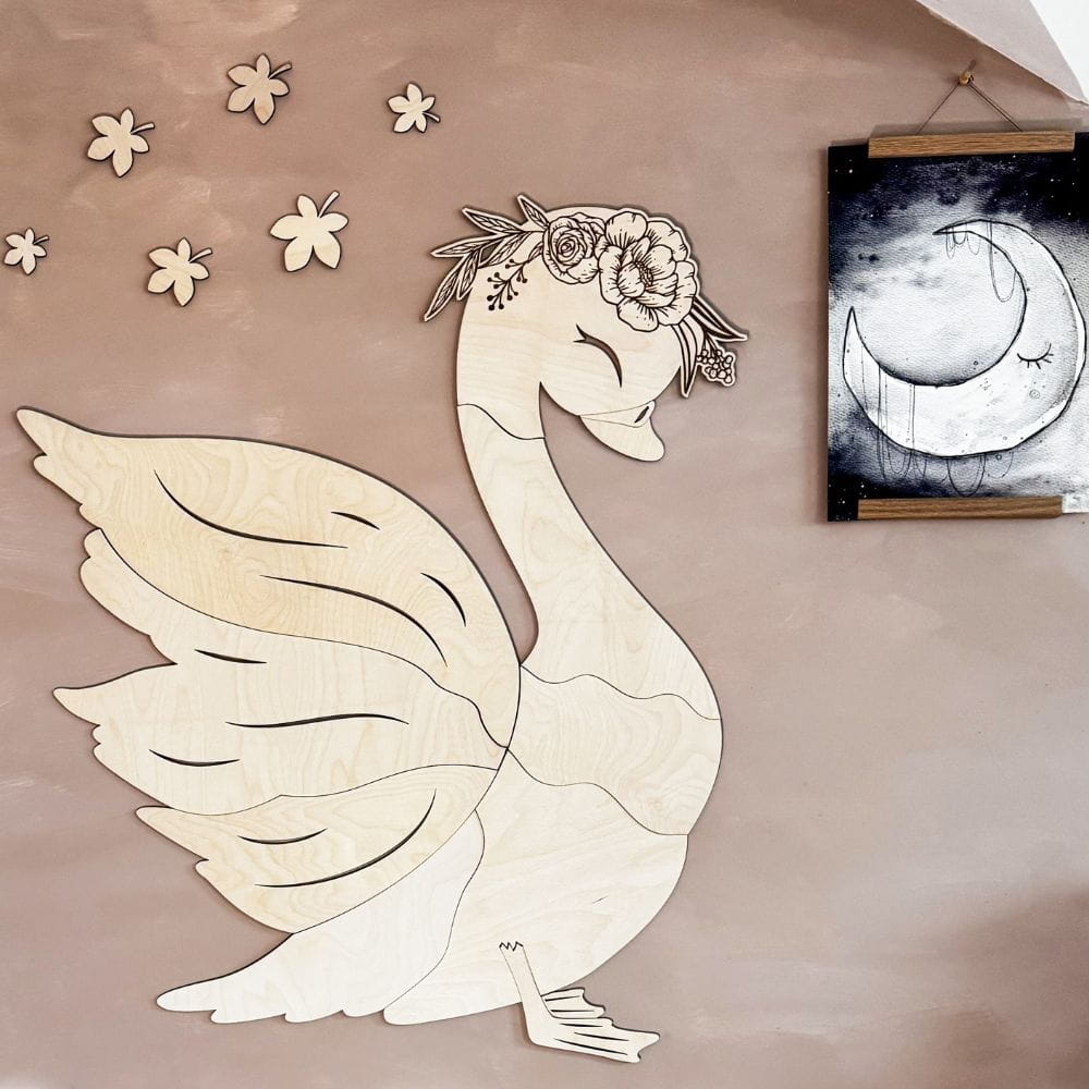Łabędź - drewniana dekoracja ściany do pokoju dziewczynki