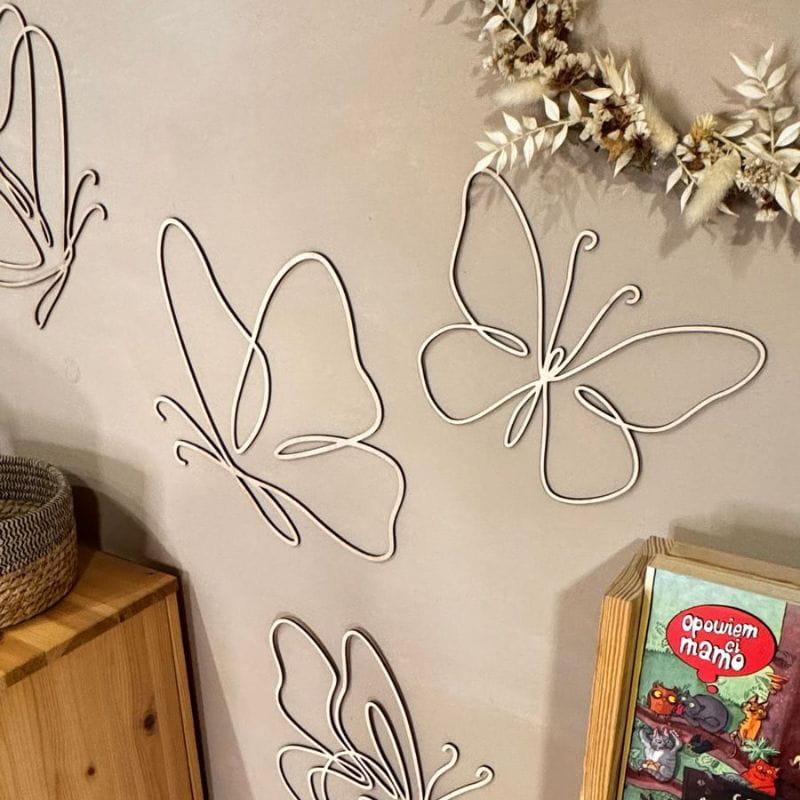 Motylki zachowują naturalny kolor sklejki, dodając przytulny akcent do wnętrza. Ale możesz też je pomalować według własnego uznania.