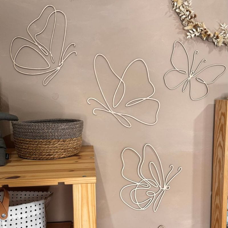 Jeśli szukasz wyjątkowych, nietuzinkowych dekoracji do pokoju dziewczynki, to motylki w stylu one line z pewnością przypadną Ci do gustu. To świetna propozycja dla osób ceniących naturalne dodatki do wnętrz. Dekoracja ze sklejki motylki stanowi doskonałe dopełnienie aranżacji ściany, wypełniając wolne przestrzenie. Naturalny design doskonale wpisuje się w styl boho, dodając przytulności każdemu pomieszczeniu.