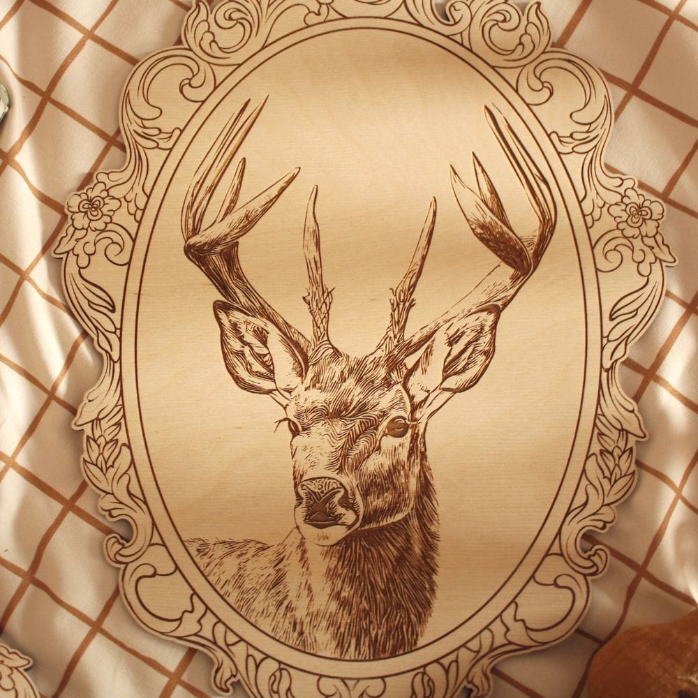 Wyobraź sobie wnętrze ozdobione delikatnym, a zarazem pełnym wdzięku motywem. Sprawdź jak prezentuje się cudny obrazek z grawerowanym jeleniem w retro ramce. To ozdoba, która doskonale łączy w sobie styl vintage z urokiem natury.