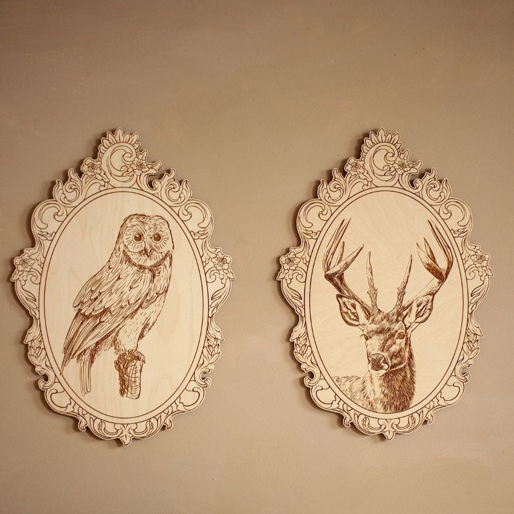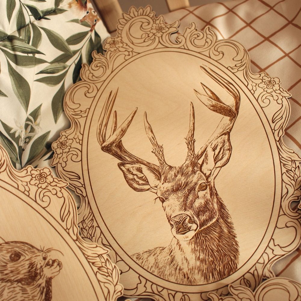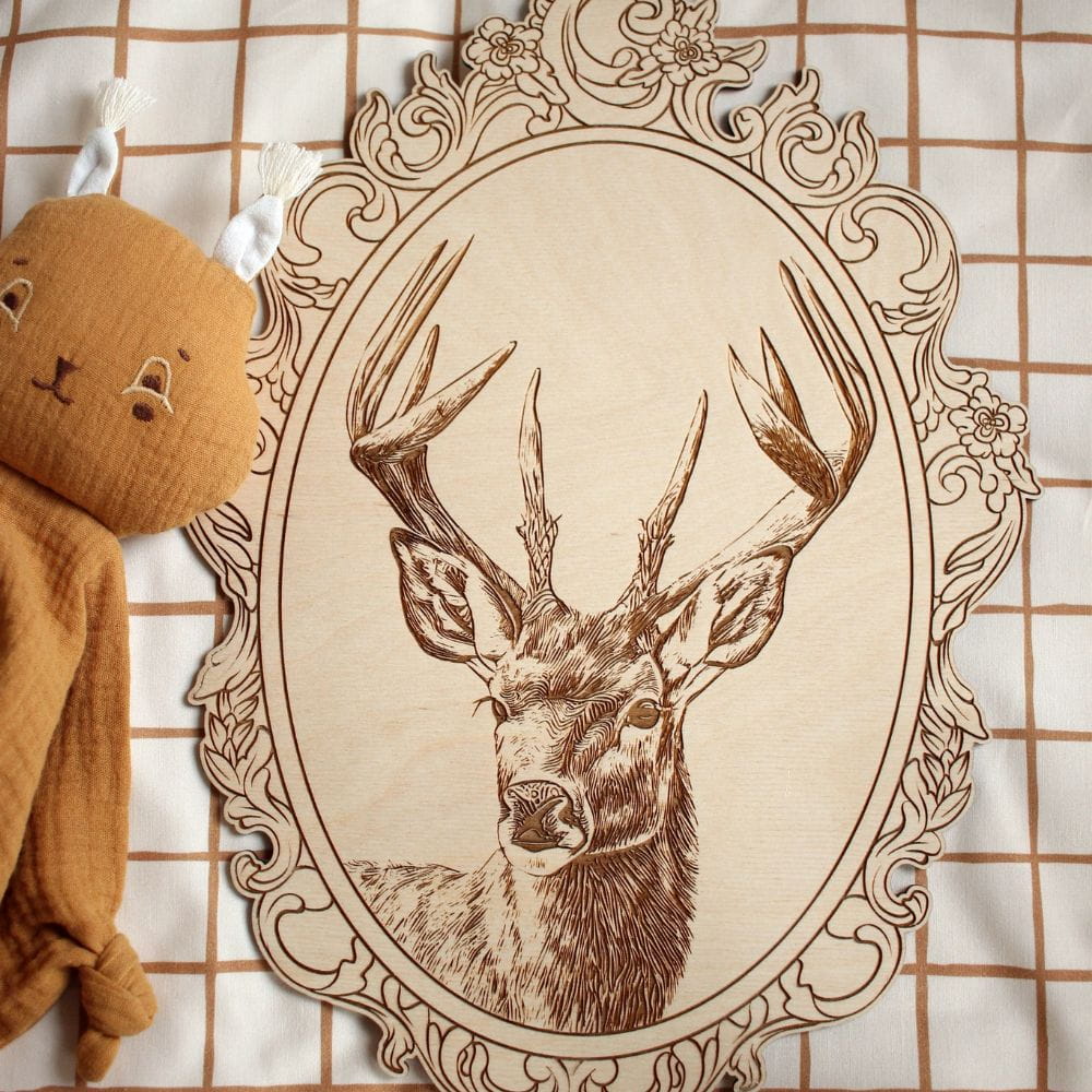 Vintage ozdoby do pokoju dziecka - grawerowany obrazek z uroczym jeleniem