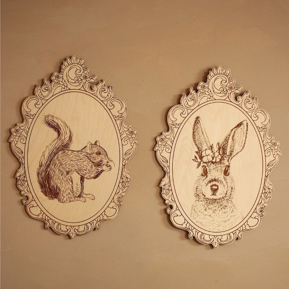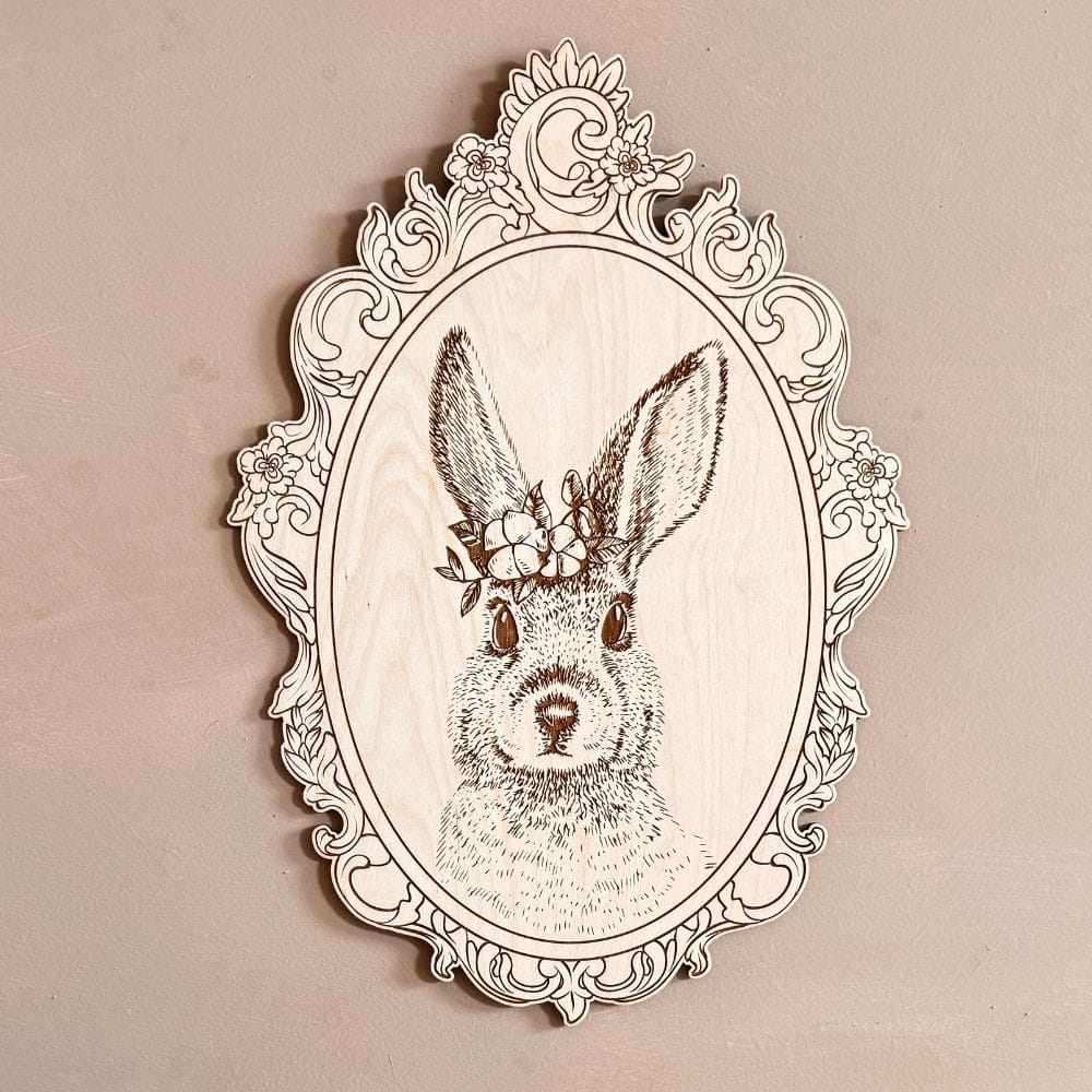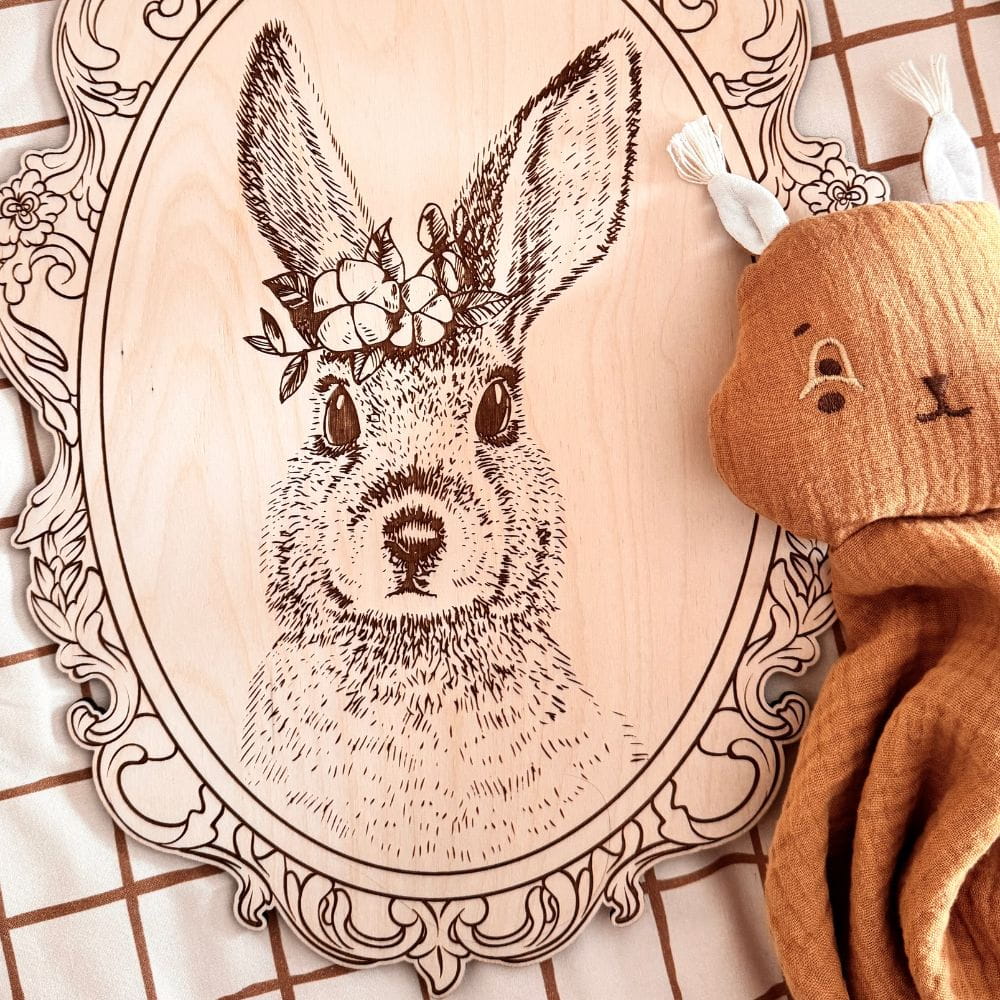 Vintage ozdoby do pokoju dziecka - grawerowany obrazek z uroczym zającem