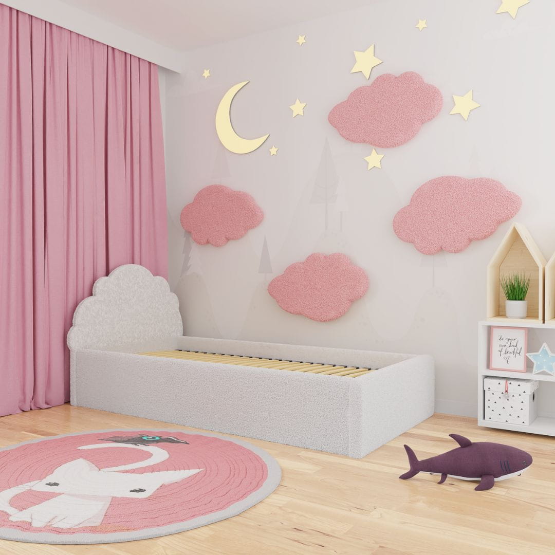 Łóżko tapicerowane dla dziecka Cloudy - zagłówek chmurka