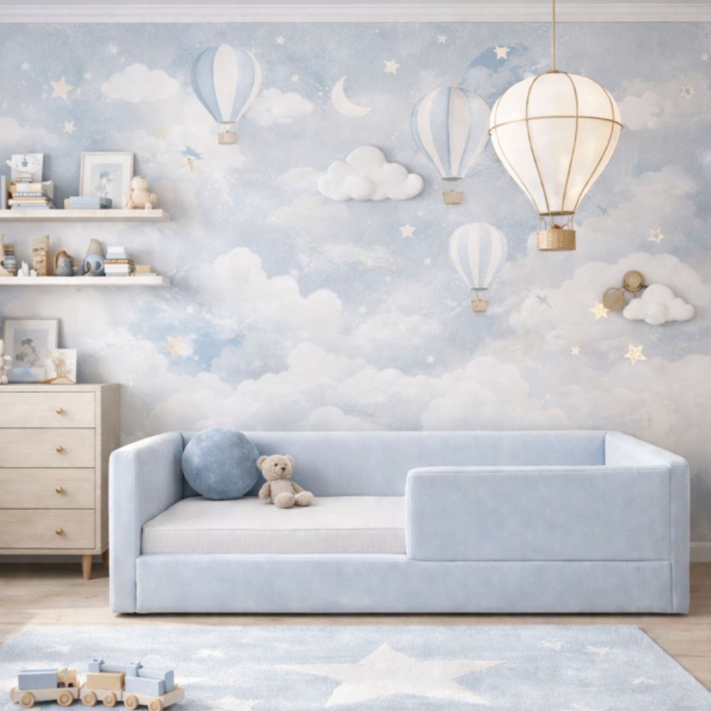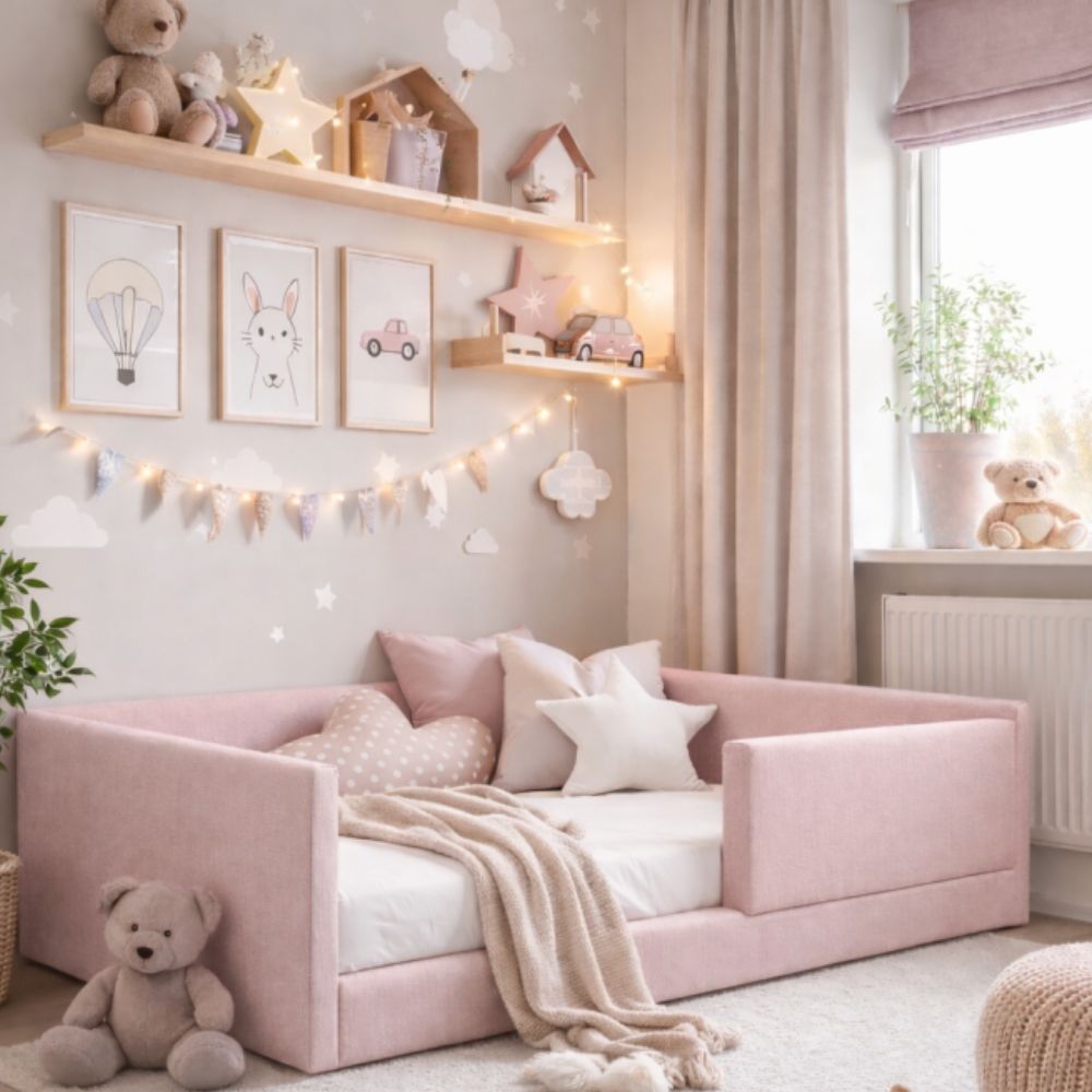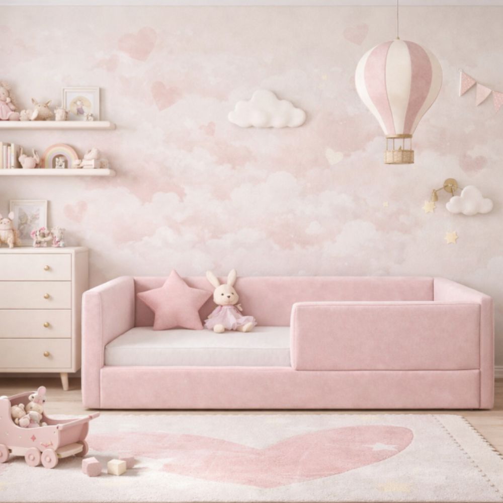 Łóżeczko Comfy zostało zaprojektowane z myślą o najmłodszych dzieciach, łącząc wygodę, bezpieczeństwo i ponadczasowy design. Miękka, tapicerowana rama otulająca całą konstrukcję sprawia, że łóżko jest przyjazne w codziennym użytkowaniu – zarówno podczas snu, jak i zabawy. Jego minimalistyczna forma doskonale wpisuje się w nowoczesne, pastelowe wnętrza dziecięce.