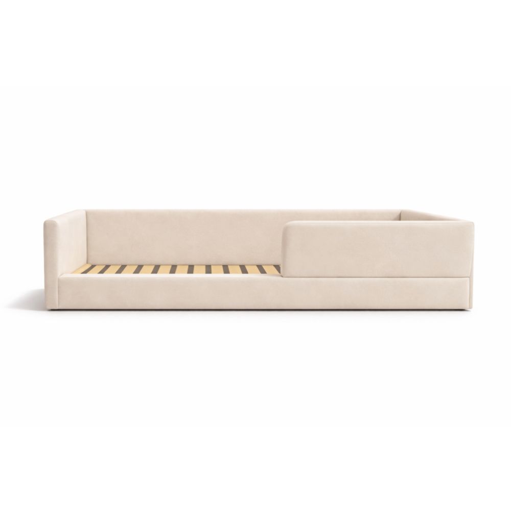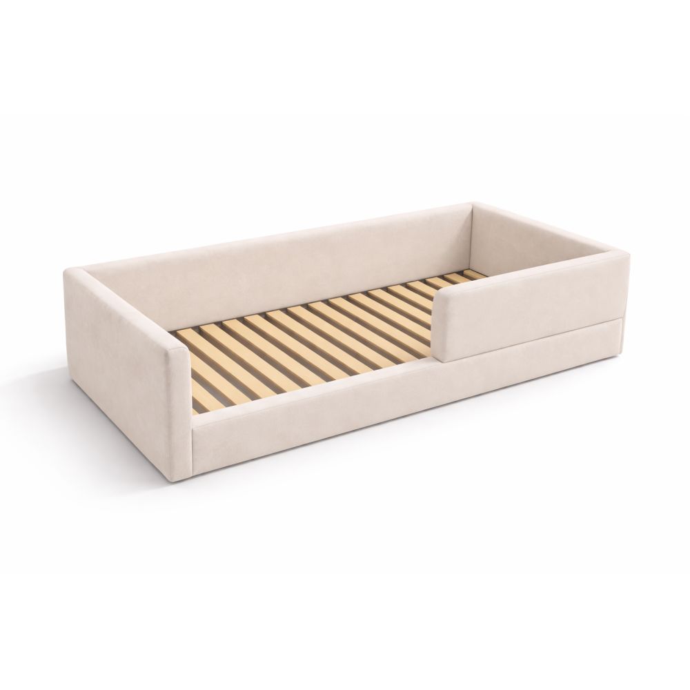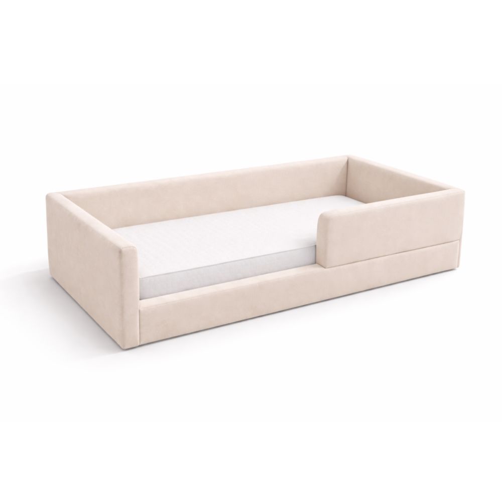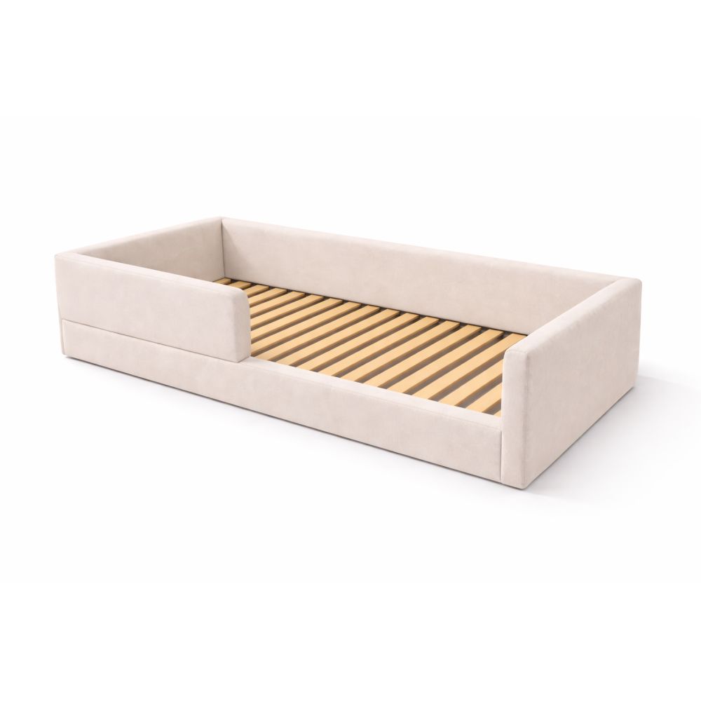 Łóżeczko Comfy zostało zaprojektowane z myślą o najmłodszych dzieciach, łącząc wygodę, bezpieczeństwo i ponadczasowy design. Miękka, tapicerowana rama otulająca całą konstrukcję sprawia, że łóżko jest przyjazne w codziennym użytkowaniu – zarówno podczas snu, jak i zabawy. Jego minimalistyczna forma doskonale wpisuje się w nowoczesne, pastelowe wnętrza dziecięce.