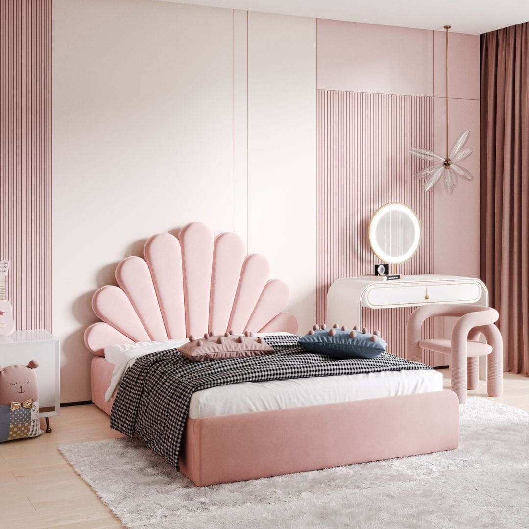 Łóżko tapicerowane dla dziewczynki Shell - zagłówek muszelka