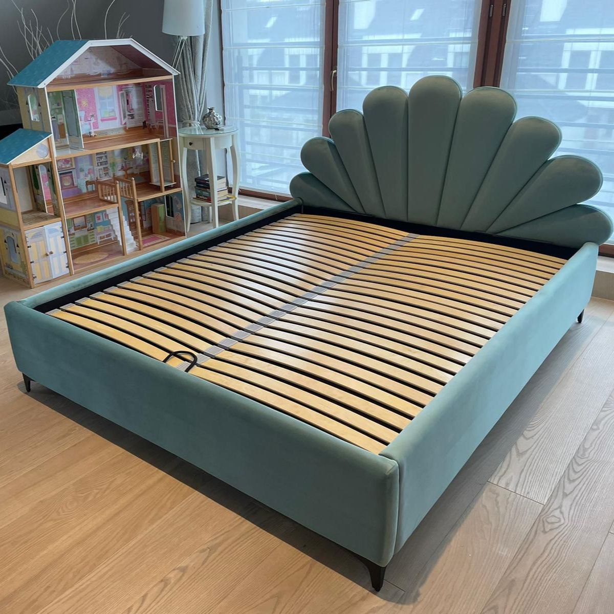 Niezwykle urokliwe łóżko tapicerowane dziecięce z uroczym zagłówkiem w kształcie muszelki - Shell. To nie tylko miejsce do snu, ale prawdziwa przestrzeń marzeń dla najmłodszych, które łączy w sobie funkcjonalność, bezpieczeństwo i styl.