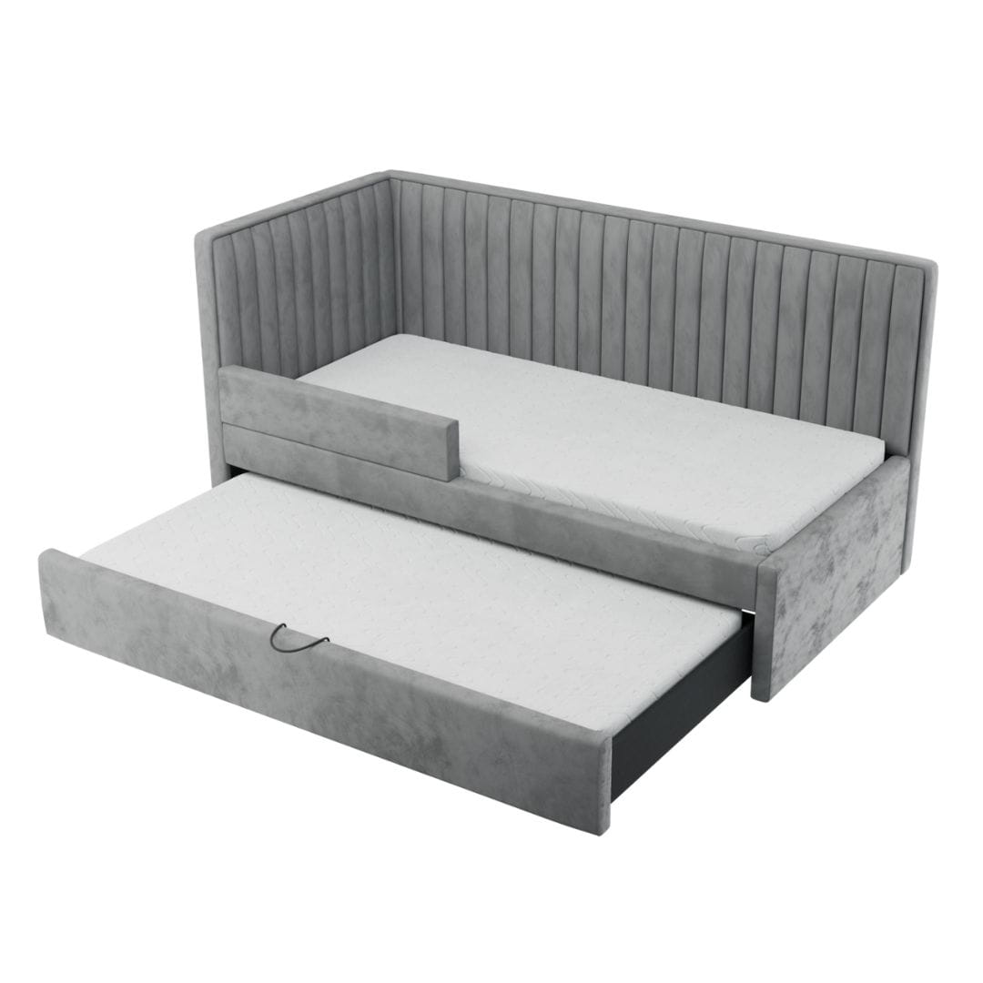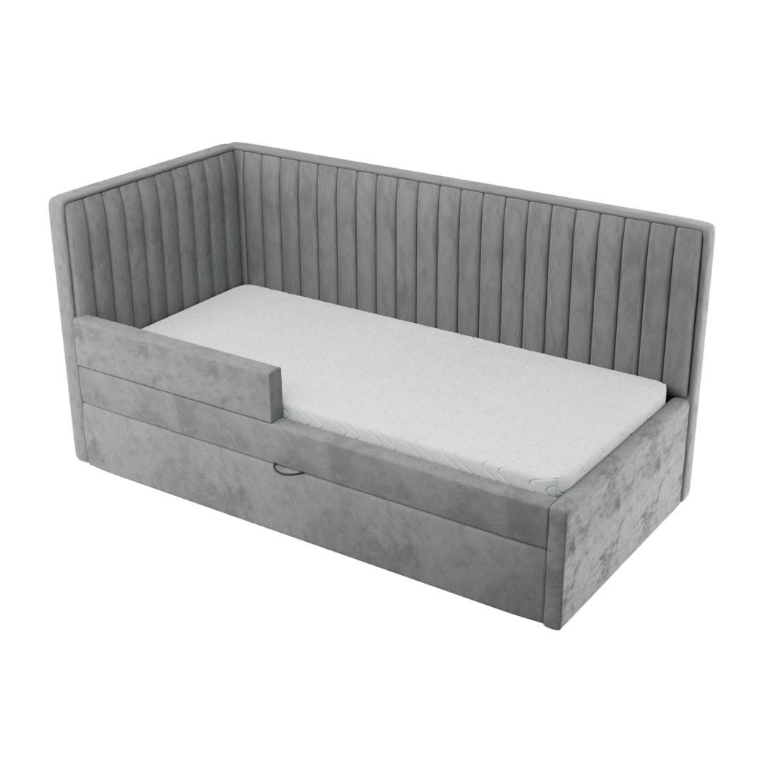Łóżko tapicerowane dziecięce zabudowane Roller – idealne miejsce do snu, zabawy i marzeń Twojego malucha. To niezwykle funkcjonalne i stylowe łóżko, które doskonale wpisuje się w dziecięcy świat, a jednocześnie pozwala na indywidualną personalizację.