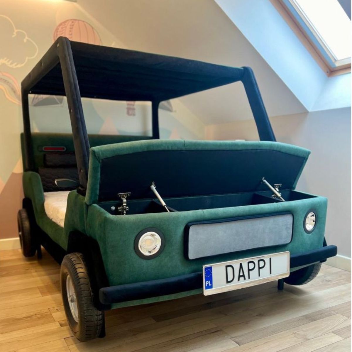 To wyjątkowe tapicerowane łóżko w kształcie auta terenowego łączy komfort, bezpieczeństwo i niepowtarzalny styl, pobudzając wyobraźnię każdego małego odkrywcy. Miękkie, tapicerowane boki chronią przed upadkami, a efektowny design w stylu safari sprawia, że pokój dziecka zyskuje przytulny, przygodowy klimat. Idealne dla małych podróżników gotowych na wielkie sny i przygody!