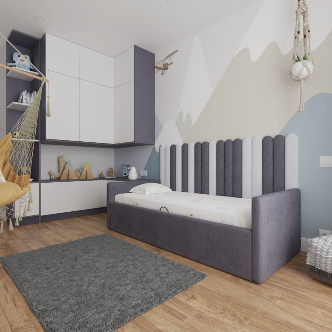Łóżko dziecięce tapicerowane z szufladą