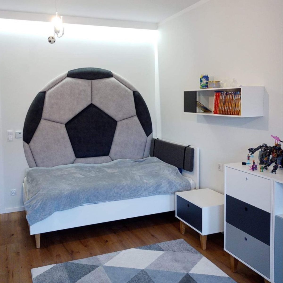Wprowadź do wnętrza sportowego ducha dzięki panelom tapicerowanym w kształcie piłki! To nowoczesne panele ścienne, które łączą funkcjonalność z dynamicznym designem, tworząc wyjątkową przestrzeń pełną energii i stylu. Idealnie sprawdzą się w pokoju młodzieżowym, sypialni fana sportu, pokoju dziecka czy nowoczesnej strefie relaksu.