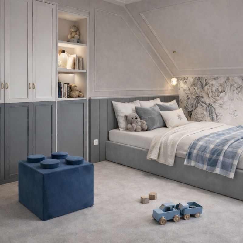 W Tuliroom wiemy, że diabeł tkwi w szczegółach. Pufy zostały zaprojektowane tak, aby cieszyć oko rodzica i dawać frajdę dziecku. Realistyczny kształt nawiązujący do ulubionych klocków sprawia, że mebel staje się centralnym punktem aranżacji, nadając jej radosnego, a zarazem stylowego charakteru.