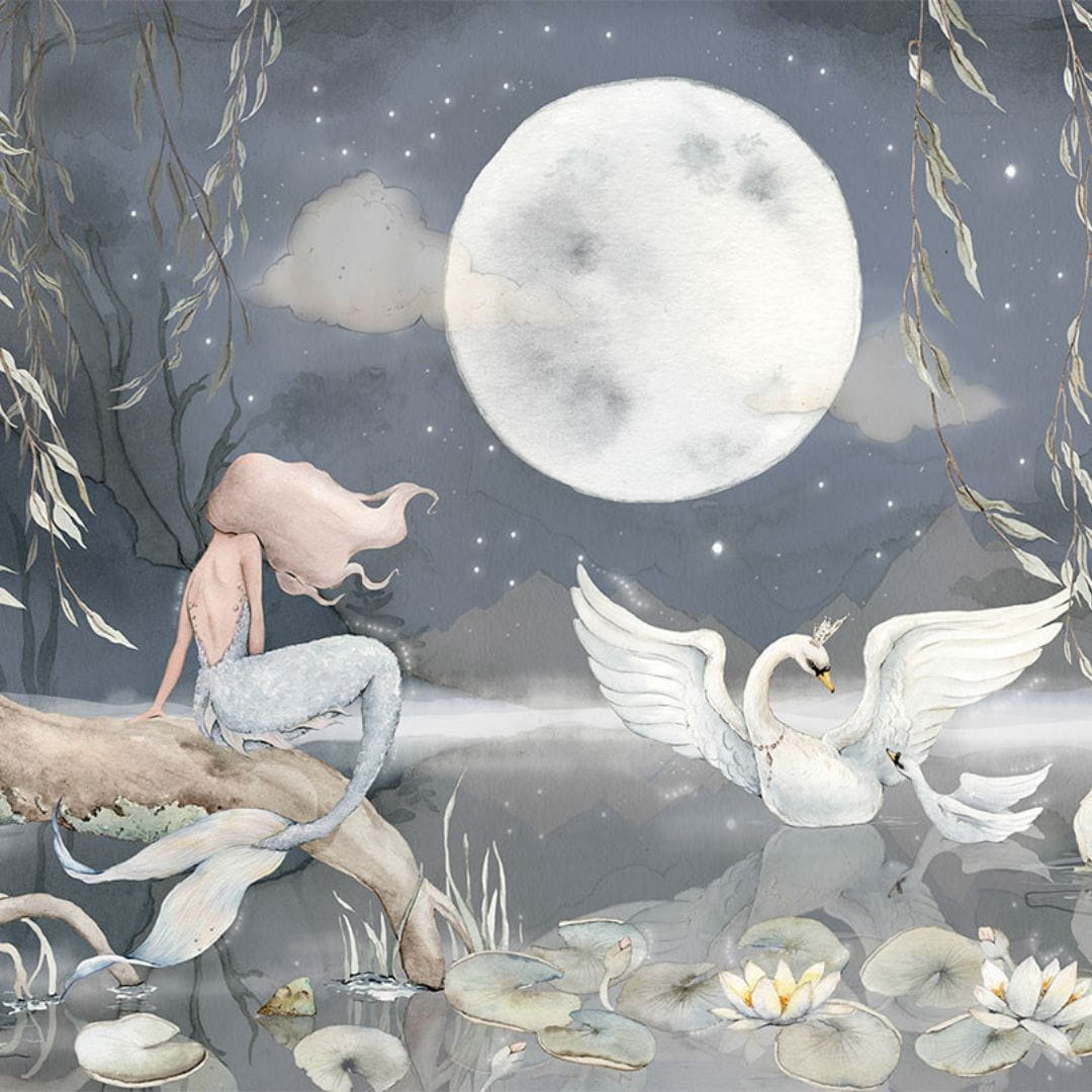DEKORILLO MURAL MERMAID LAKE TAPETA Z SYRENĄ GRANATOWA - PRÓBKA TAPETY