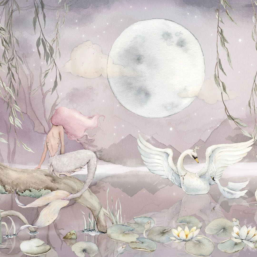 DEKORILLO MURAL MERMAID LAKE TAPETA Z SYRENĄ RÓŻOWA - PRÓBKA TAPETY