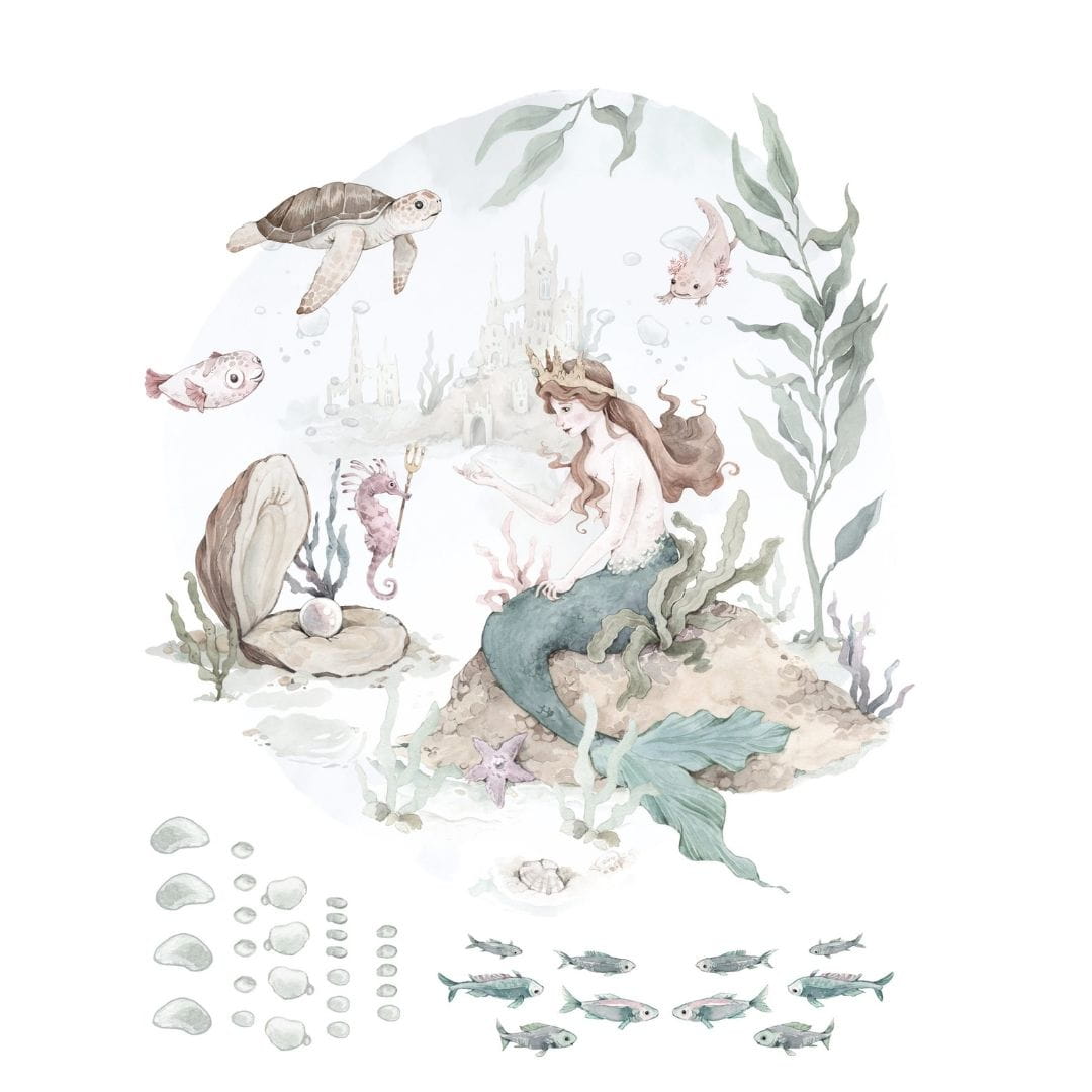 Zapraszamy do podwodnego świata jej Królewskiej Mości – Syrenki Malii. Naklejka w kształcie morskiego bąbelka będzie pięknym uzupełnieniem aranżacji z tapetą Podwodne Królestwo, ale sprawdzi się również jako indywidualna dekoracja ściany. Jesteśmy pewni, że skradnie serce wszystkim dziewczynkom!