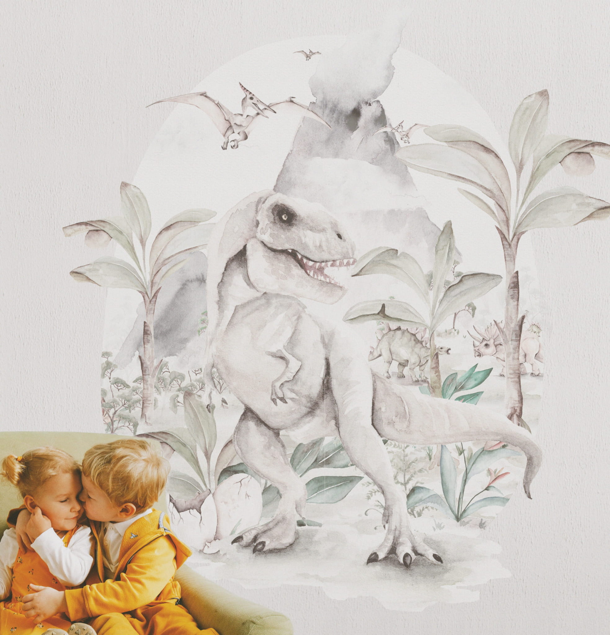 Zapraszamy do inspirującego świata prehistorycznych olbrzymów! Naklejka z Tyranozaurem Rexem w roli głównej idealnie wpisze się w upodobania dziecka zafascynowanego życiem tych wielkich gadów. Naklejka ma kształt jaja dinozaura, przez co będzie niezwykle ciekawym dodatkiem każdego dziecięcego pokoiku. To dobry pomysł zarówno na indywidualną dekorację, jak i połączenie jej z tapetą Prehistoryczny Świat Dinozaurów.