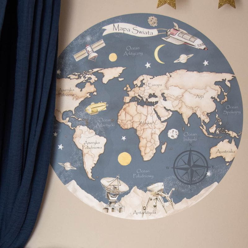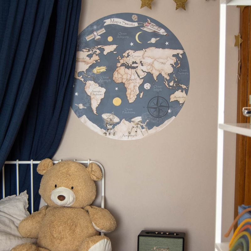 Szukasz dekoracji ściennej, która inspiruje? Oto naklejka koło, która nie raz zabierze Twoje dziecko w fascynujący świat {i wszechświat!) wyobraźni. Co więcej, to nie tylko dekoracja, ale i fantastyczna pomoc naukowa, pomoże rozpoznawać maluchowi nazwy kontynentów oraz ciał niebieskich. Zaproś ją do mieszkania i obserwuj, jak wspaniale spełnia swoją rolę!