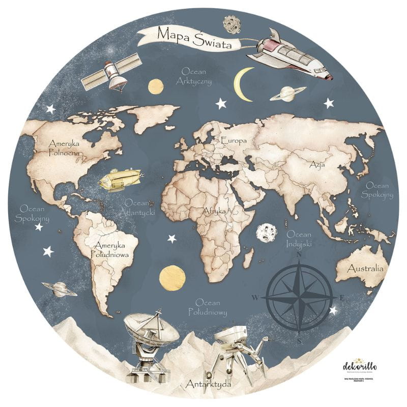 DEKORILLO - NAKLEJKA KOŁO MAPA ŚWIATA KOSMOS