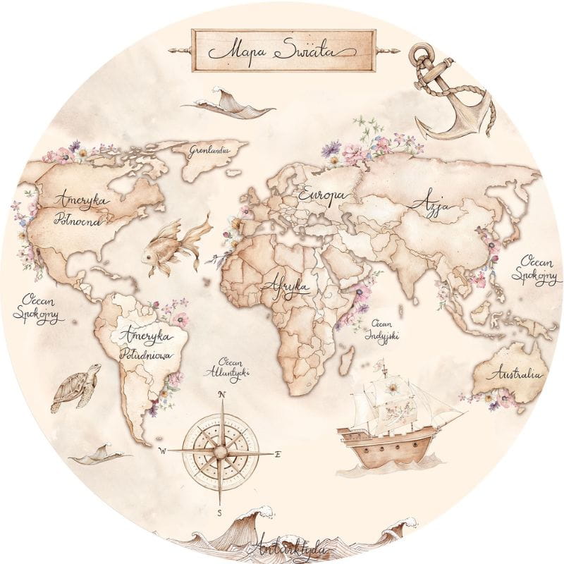 DEKORILLO - NAKLEJKA KOŁO MAPA ŚWIATA MORSKA BEŻOWA