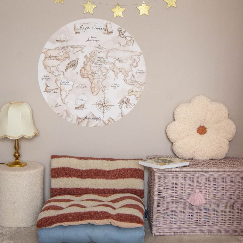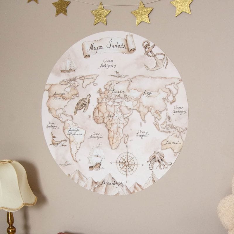 Chcesz, aby dziecko rozwinęło swoją wiedzę o świecie? Dzięki naklejce ściennej z mapą świata jest to możliwe! Wystarczy ją umieścić na ścianie i obserwować, jak wspaniale inspiruje Twoją pociechę. Z pewnością nauczy ją podstaw geografii, a być może zaszczepi w niej również podróżniczego bakcyla? Istnieje na to spora szansa. A przy okazji nasza dekoracja ścienna wspaniale wypełni pustkę na ścianach i sprawi, że wnętrze będzie się prezentowało niezwykle stylowo.