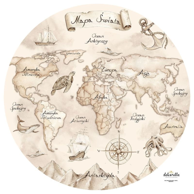 DEKORILLO - NAKLEJKA KOŁO MAPA ŚWIATA RETRO