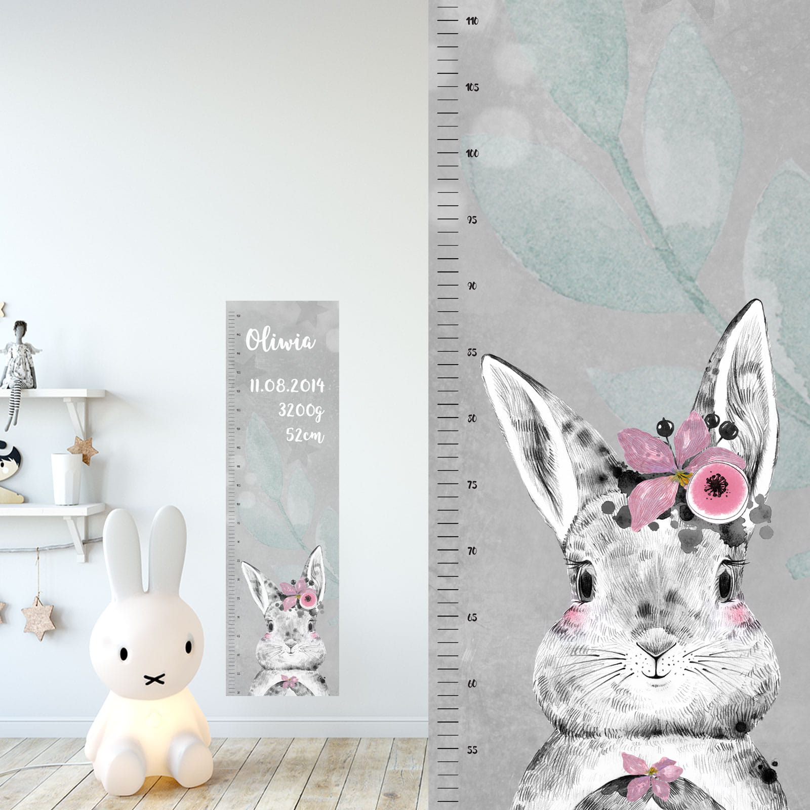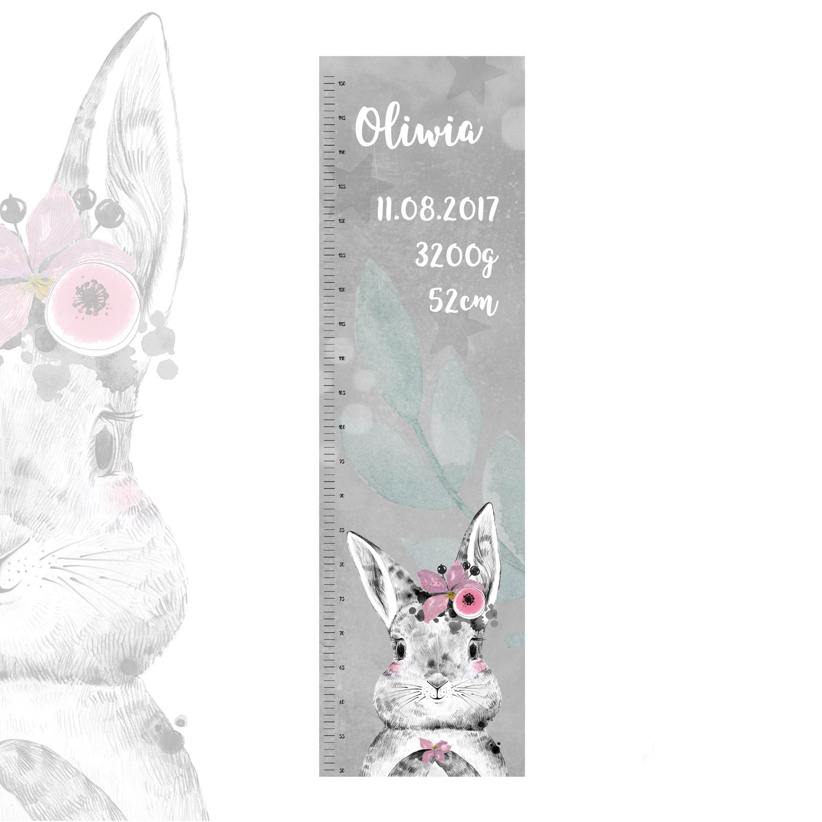 Piękna miarka przedstawiająca uroczego króliczka. Miarki wzrostu nie tylko spełniają swoją funkcjonalną rolę, ale również są niezwykłą dekoracją. Są proste, ale z delikatnym pazurem. Dzięki możliwości personalizacji to również znakomity pomysł na prezent!