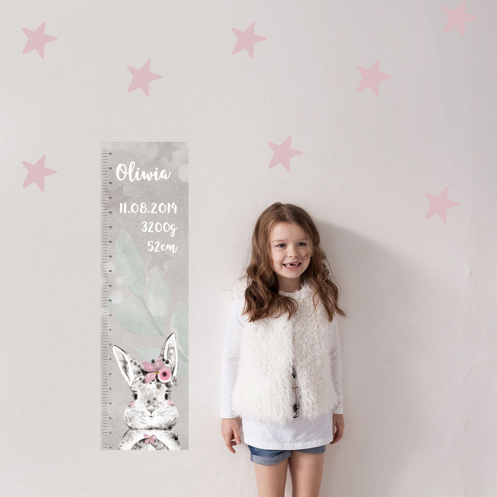 Naklejka miarka wzrostu królik - personalizowana ozdoba pokoju dziewczynki