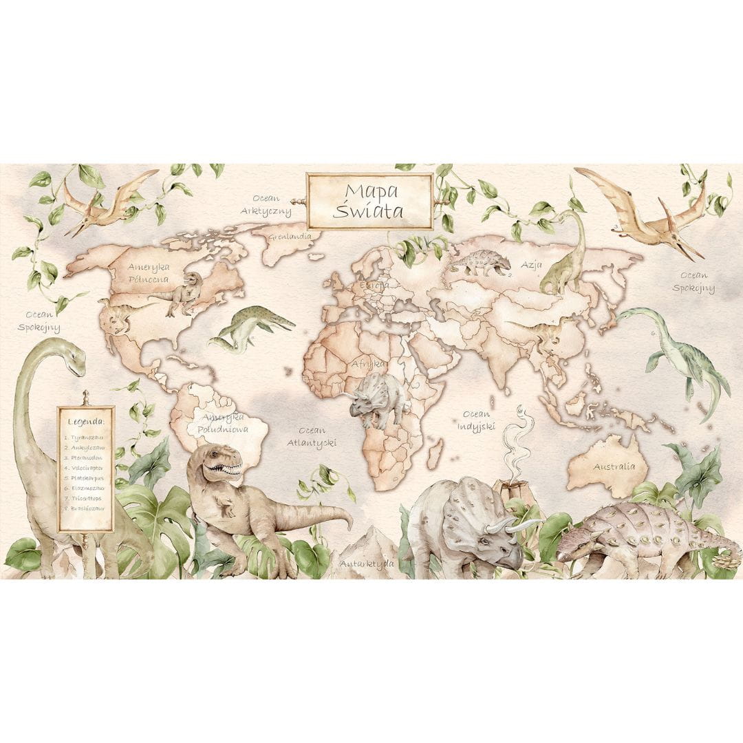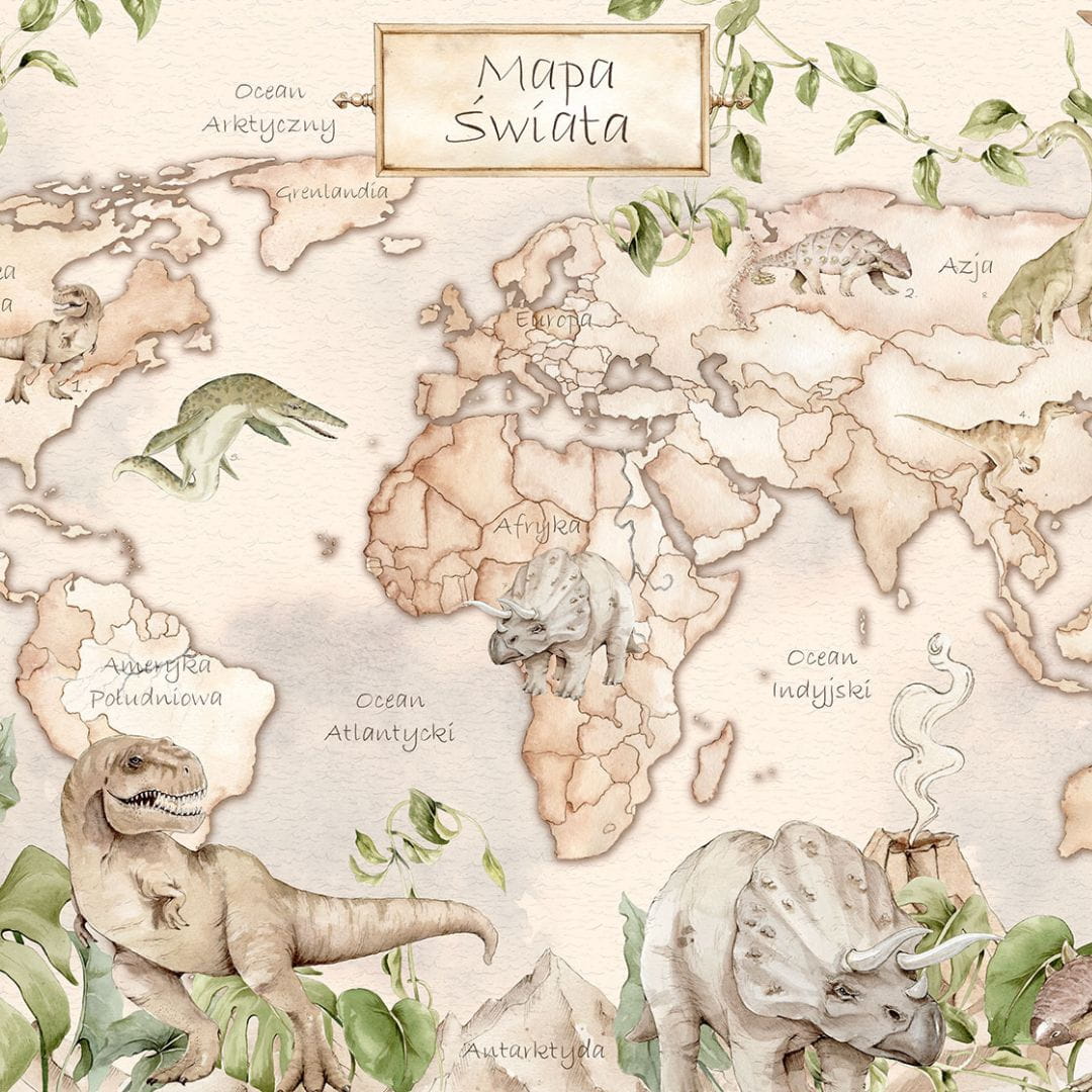 DEKORILLO - PLAKAT MAPA ŚWIATA DINOZAURY BEŻOWY