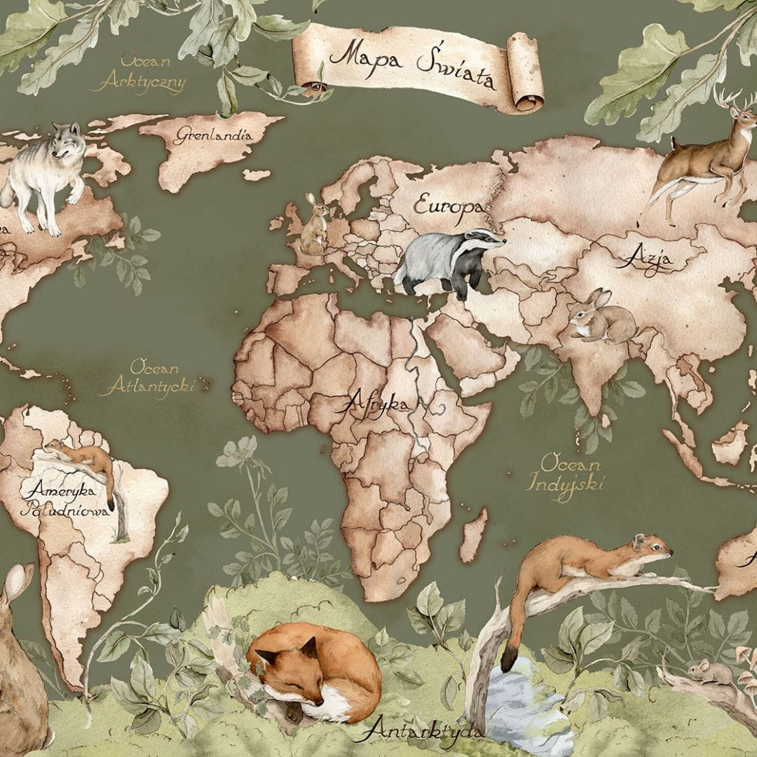 Plakat Mapa Świata motyw leśny - edukacyjna dekoracja do pokoju dziecka
