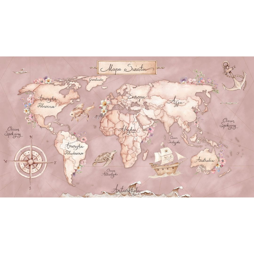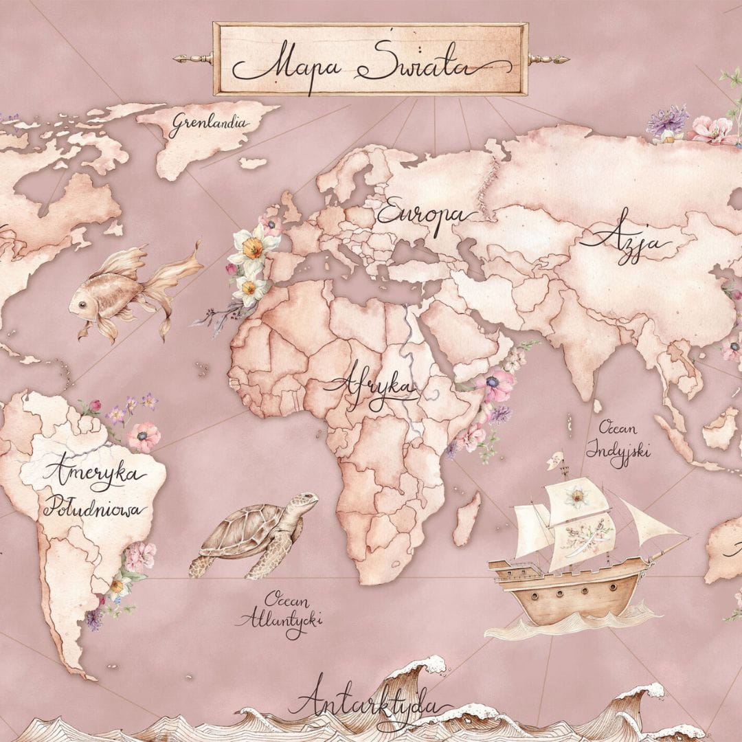 Wzór: Różowa Mapa Świata motyw morski