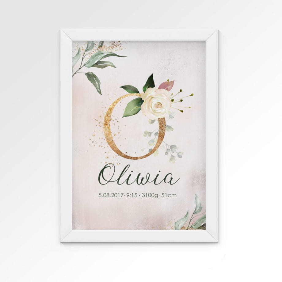 DEKORILLO - PLAKAT METRYCZKA Z LITERKĄ I KWIATAMI