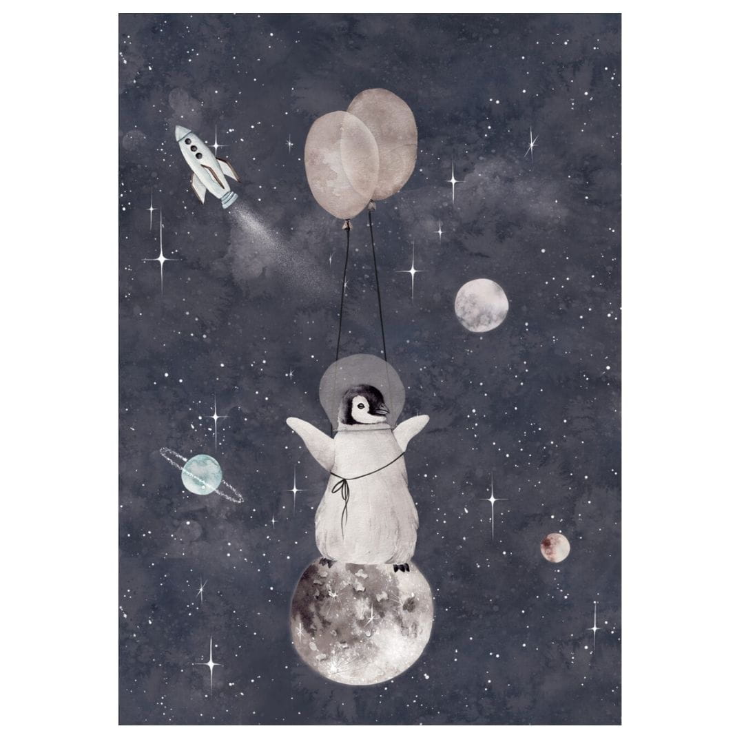 Czy Twoje dziecko uwielbia się wpatrywać w nocne niebo? Przestrzeń pozaziemska stanowi dla niego źródło inspiracji? Jeśli tak, przypadnie mu do gustu plakat z pingwinem-astronautą, który o kosmosie wie niemal wszystko! Co więcej, chętnie podzieli się tą wiedzą, pomoże zgłębiać maleństwu tajemnice wszechświata, a przy okazji oprowadzi go po księżycu, gwiazdach i odległych galaktykach. W tak urządzonym pokoiku marzenia spełniają się same!