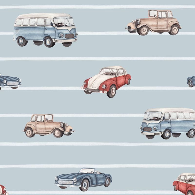 Tapeta błękitna w auta Dekorillo - pokój chłopca