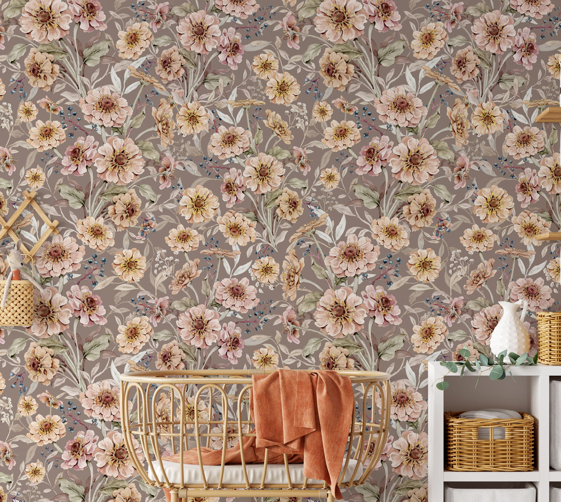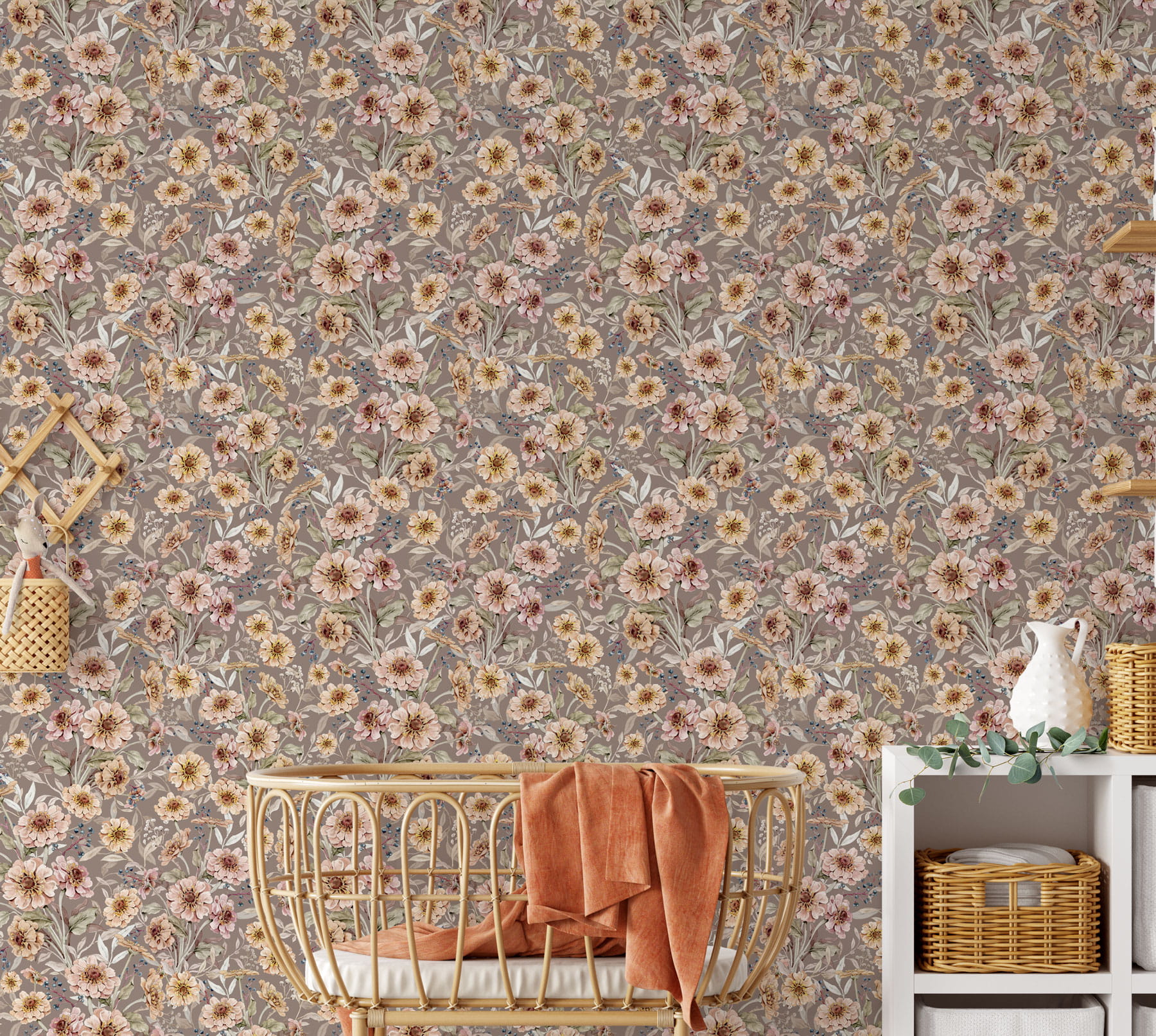 DEKORILLO - TAPETA DLA DZIEWCZYNKI KWIATY - JESIENNY OGRÓD BRĄZ