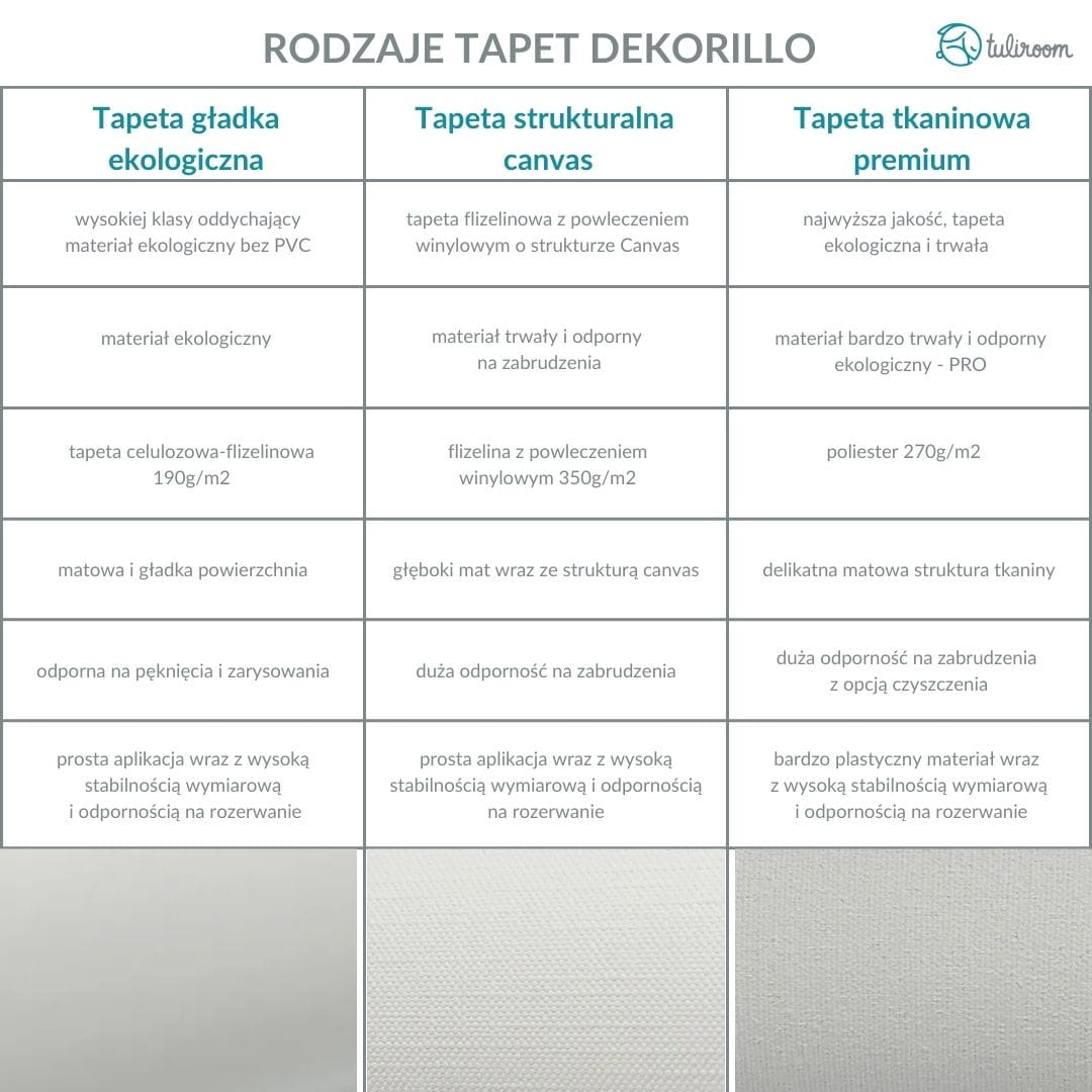 - Materiał: flizelina z celulozy (flizelinowa), flizelina z winylem (Canvas), flizelina z winylem (brush), poliester (Premium).