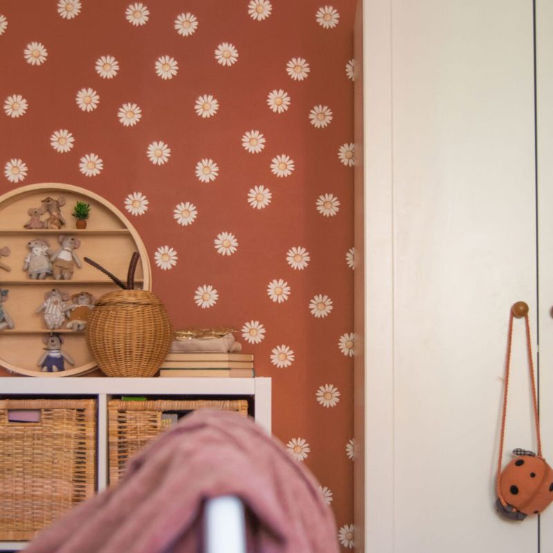 DEKORILLO - TAPETA DLA DZIEWCZYNKI STOKROTKI LITTLE DAISY CEGLANA