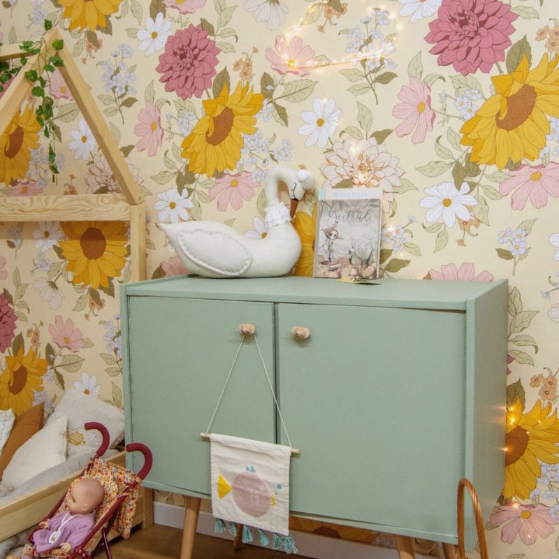 Ożyw pokój dziewczynki uroczymi słonecznikami! Tapeta Sunflowers to idealny wybór dla tych, którzy pragną stworzyć niepowtarzalną atmosferę pełną kolorów w dziecięcym pokoju. Tapeta przyciąga uwagę swoim pięknym wzorem, który wprowadza do pokoju dziewczęcego przyjemny i ciepły nastrój.