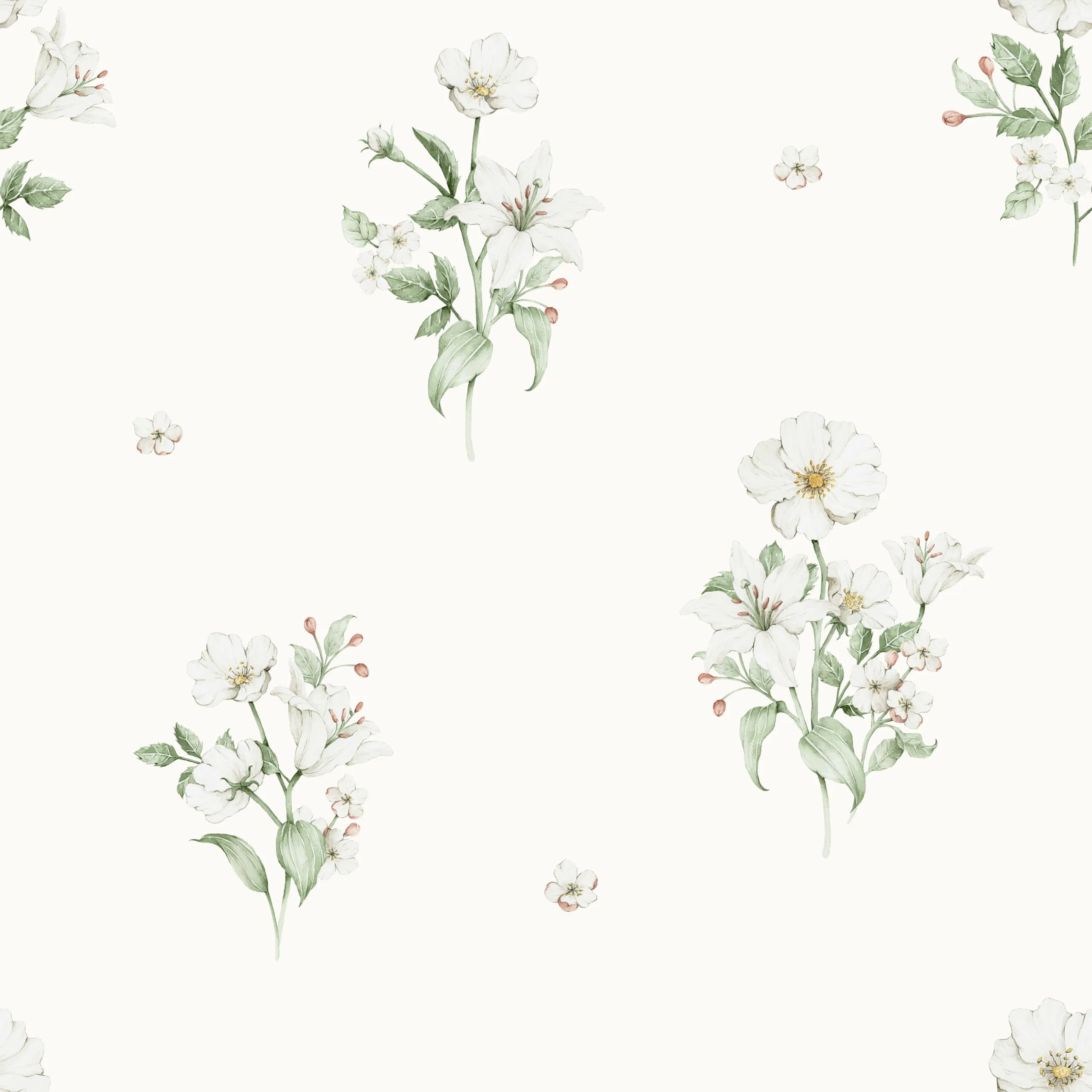 DEKORILLO - TAPETA DZIECIĘCA BIAŁE KWIATY