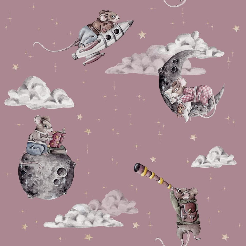 Tapeta Cosmic Little Mouse to opowieść o poszukującej przygód myszce, która tak bardzo pragnęła odkryć kosmos, że w końcu dopięła swego, zamknęła oczy, mocno zacisnęła pięści i…. w końcu się tam znalazła! Lata na myszkowej rakiecie, śpi na księżycu, obserwuje gwiazdy – to tylko niektóre z jej aktywności, o których chętnie posłucha każdy miłośnik astronomii.