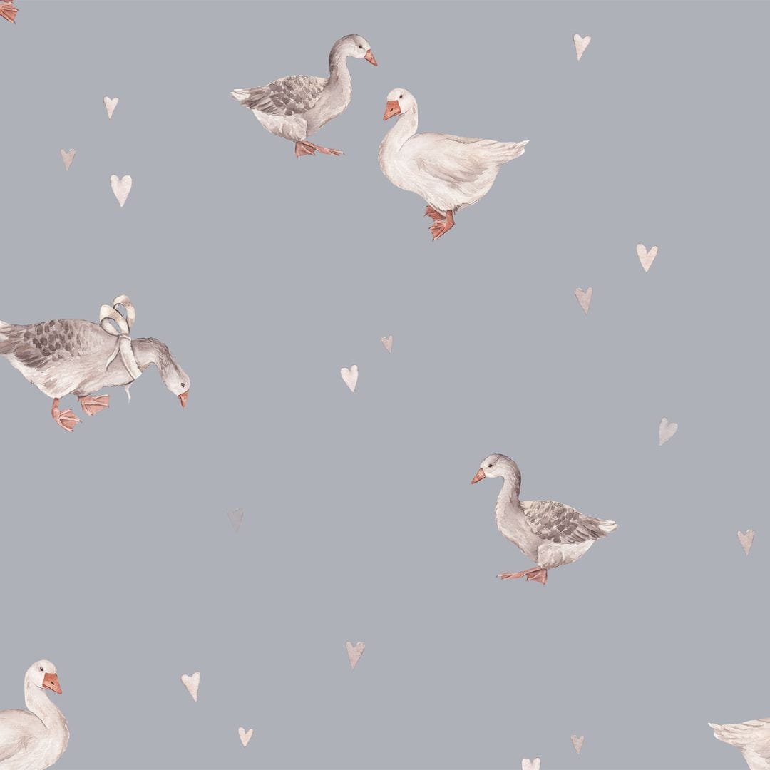 DEKORILLO - TAPETA DZIECIĘCA LOVE GEESE NIEBIESKO-SZARY