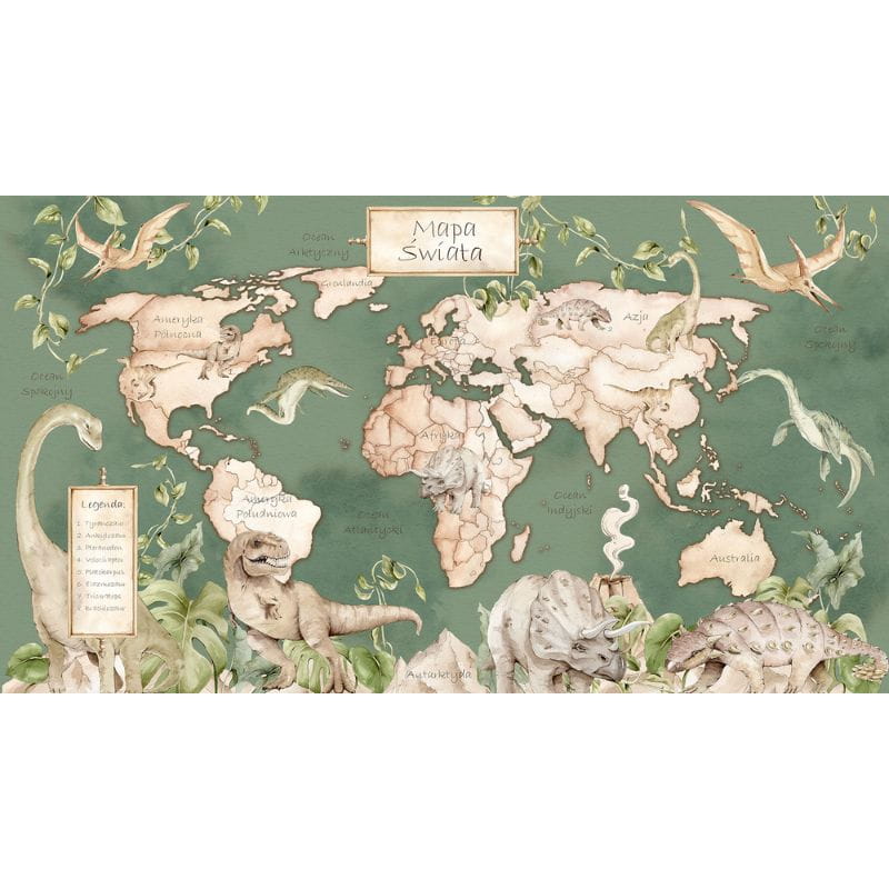 DEKORILLO - TAPETA DZIECIĘCA MAPA ŚWIATA DINOZAURY ZIELONA
