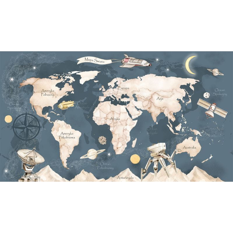 DEKORILLO - TAPETA DZIECIĘCA MAPA ŚWIATA KOSMOS